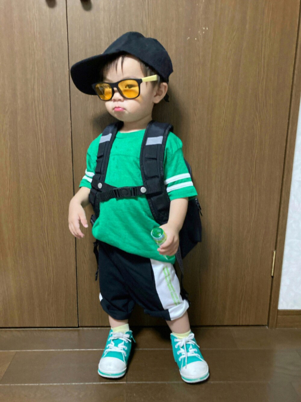ご覧頂きありがとうございますᵕ̈* 🏷#めがね なくてDAISOのサングラスで😎 グリーンコンバース欲しかったけど、 たまたま古着屋さんでArnold Palmerのベビーシューズ美品に出会い一目惚れ😳💓お持ち帰りしました♡ お値段も295円と可愛くて🙈 もう販売してないみたい😅 おりつ君やっててやりたかったグリーン🥪に黒🧢🎒スタイル💡 お名前、画像ごめんね🙏 今日から長女が夏休みで🍱持ちで私仕事でバタバタ~😆 返信遅くなっても大丈夫でしたらコメ歓迎です💡 いつも♡、+、💬、📁in ありがとうございます✨ どれもとっても嬉しいですÜ。:*