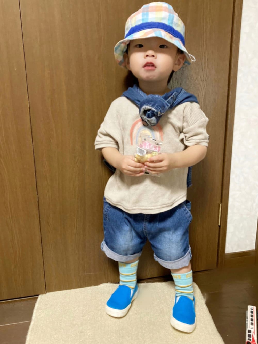ご覧頂きありがとうございます◡̈⋆ 🏷#スリッポン 🏷#シャツスタイル 昨日投稿予定だったシャツスタイルとは全く違うけど💦 デニムシャツ×デニムハーフパンツ お友達からのお下がりのミキハウスの帽子 もうサイズアウトギリギリで今年初被り😅 先日1歳半健診で何とか身長、体重が 曲線ギリギリで一安心😌 小柄な息子なりに成長していた様。 足もいつの間にか大きくなっていてコンバース、黒スリッポン等物により13cm履かせると「いたい!」と言う様に😆 でスリッポンはこのお下がりのみ。 今日は旦那さん誕生日で、家族デーの為、コメ欄閉じます🙇♀️ いつも♡、+、💬、📁in ありがとうございます✨ どれもとっても嬉しいですÜ。:*