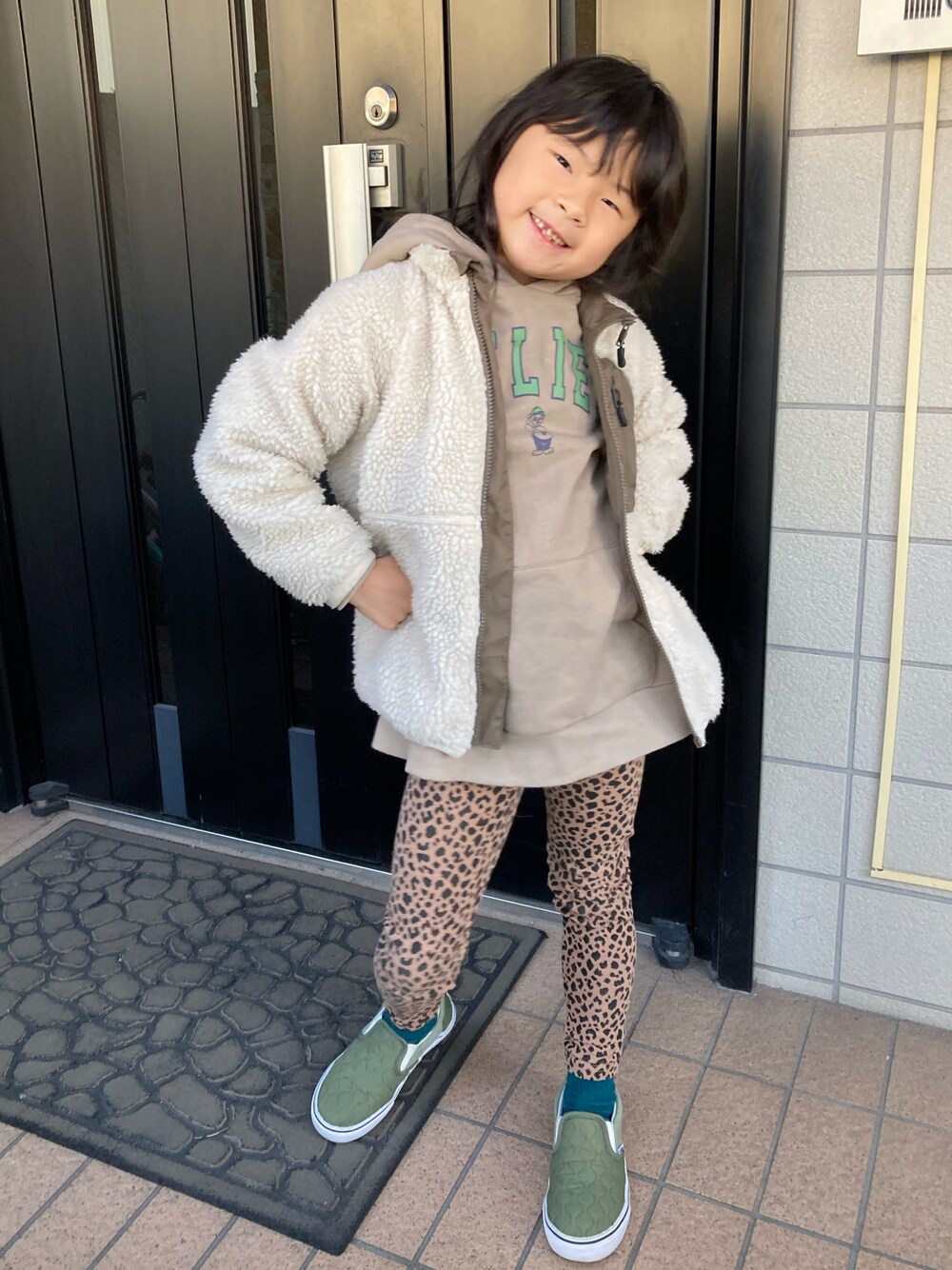 ご覧頂きありがとうございます◡̈⋆ キルティングジャケットの撮影も撮りだめもないので、昨日のリンリン🔔 レオパードレギンスに💚🧦 ボアジャケットありとなしver. 今日は旦那さん仕事なので、子供達連れて水族館に行く予定🚃💨 年パスあるのに8月に行って以来です😆 いつも♡、+、💬、📁in ありがとうございます✨ どれもとっても嬉しいですÜ。:*