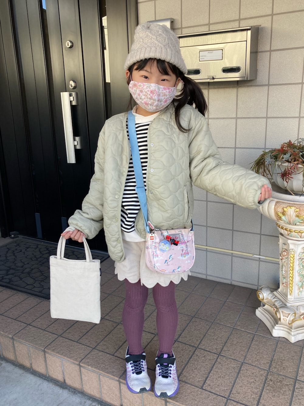 ご覧頂きありがとうございます◡̈⋆ 昨日はガーナ3兄弟、 ズンタウラスコラボに沢山の ♡、+、💬、📁in ありがとうございましたÜ。:* 🏷#チョコ色に染まれ 🏷#キルティングジャケット petit mainさんコーデ🥰 ミントブラック&ホワイト&🍓チョコ🍫 🍷添え 色々MIX🍭肝心の🤎は🐻ピンで💡 またGAPの🤍ハイネックinしてます😆 昨日暖かくてリアルコーデです。 100均行く前に1枚だけ撮りました😆 ガーナ3兄弟でコラボしたいっき君の ママ、ことちゃんから素敵な🎁が届き 早速、🐻のヘアピン&🎀付けて リンリン喜んでいました✨ ことちゃん本当にありがとう❤️ なのにニット帽被って見えず申し訳ない💦 小窓にペタり。 他にも頂いたのでまた投稿させてもらいます🥰 頭痛あり、今日予定もありバタバタなので💬欄閉じます🙇♀️ 昨日の返信またゆっくりさせてください🙇♂️