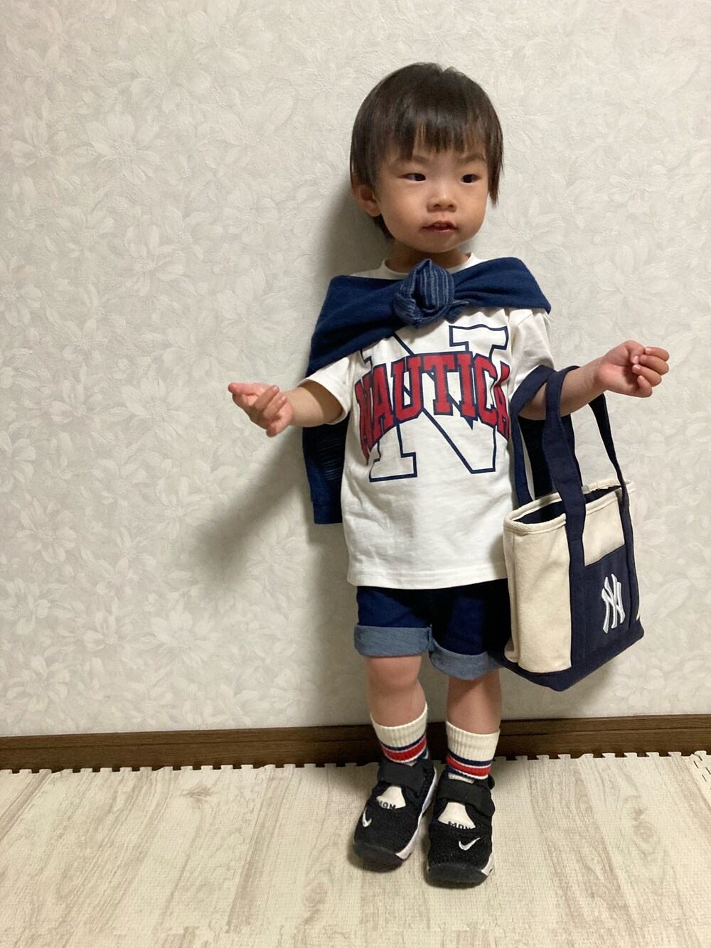 ご覧頂きありがとうございます◡̈⋆ 🏷#はじめましてコーデ 帽子なし👩🦲久しぶり😆 NAUTICAのTシャツ、 21SSで昨シーズンのですが、 お安くGETできて はじめまして🤗 リンリンとイロチ💡 昨日暑くてリアル公園コーデに カーディガン肩がけしました。 ポーズ女の子通り越して、 スーパーに買い物行くおばちゃん😅 2歳児のはじめましてコーデは これくらいカジュアルでも お友達とすぐ打ち解けて遊べそう🙆♀️✨ *大窓5枚あり👉 キャップ🧢ver.2枚目以降に。 小窓も昨日の様子ペタり。 リンリンイロチTを着て一緒に 公園で遊んでたのになんと👧🏻の 写真1枚もなかった😱 👧🏻の保育園時代のお友達親子 10組位で集まって公園で遊んでいて 私は👦🏻に付きっきりでした💦 小学生の動きに付いていけない👵😅 でも優しいお友達らが👦🏻と すべり台滑ってくれたり シーソーを一緒にしたり、 ブランコ押してくれたり、 可愛がってもらえて とっても楽しんでいました😊 👧🏻とも一緒に遊んでたんだけどな😆 また撮ります💡 今日は家族デー💡 いちご狩り🍓に行って来ます🚗³₃ 撮りだめが溜まっていくので、 明日も投稿するかも😆 いつも♡、+、💬、📁in ありがとうございます✨ どれもとっても嬉しいですÜ。:*