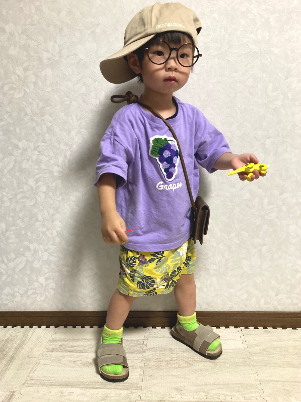 ご覧頂きありがとうございます◡̈⋆ 🏷#セットアップ 昨年購入のBREEZEさん グレープ🍇Tとショートパンツの 着回しBREEZEコーデ☺️ バクプリ🍇🥤もかわいい❣️ FRUITS OF THE LOOMさんの 🧢と靴下🧦で フルーツ盛り合わせ 🍇🍋🍎🥝 1日動き回った後、部屋撮りしたので、 しわくちゃで🙇♂️ *大窓5枚あり 小窓にも写真ペたり。 🟥赤いのはクレヨンしんちゃんのパズル😆 靴下🧦はパープルとどちらが良いか聞いて👦🏻がこちらを選びました💡 今日の恐竜はパラサウロロフス🦖 USJ行った時、ジェラシックパークのライドは乗れないので🥚4Dパズル🦖 だけ購入したやつ🥺 スピノサウルスではなくこちらがいいと言い張りなんでか分からなかったけど、 パンツの色味とコーディネートしたか❓ 因みにこの格好で🍇沢山食べました😋 今日から仕事で通常に戻ります。 ポチ❤️で🙇♂️ 皆さま、また今週もファイト💪✨ いつも♡、+、💬、📁in ありがとうございます✨ どれもとっても嬉しいですÜ。:*