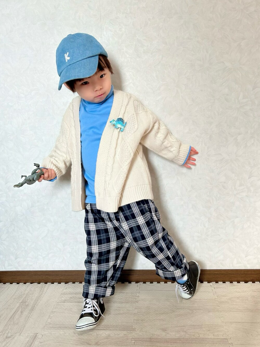 ご覧いただきありがとうございます◡̈⋆ ハンドメイド作家で仲良くして もらってるtetoさんこと、 さりちゃんにオーダーで スピノサウルスブルー🦕 のブローチを作ってもらいました🥹💕 Eriちゃん所のRENくんが ティラノサウルス🦖のブローチを オーダーしていて、恐竜大好きな息子 にもお声がけありがとう❣️ ティラノサウルスも大好きだけど、 1番最初にお迎えしたのがスピノサウルス で、スピちゃんって呼んで気に入ってる ので、👦🏻はスピノサウルスにしたよ❣️ ブルー、ホワイトのグラデーション 可愛いし、帆の所にビーズお願いしたら 想像以上に可愛いブローチでした🤩 最近、ピンクの次にブルーがお気に入りの 息子くんにピッタリですっごい喜んでた💝 コーデはEriちゃん所のRENくんに 寄せてみました💙🤍 お名前、お写真お借りしました🙇♂️ 👦🏻はスピノサウルスブローチに合わせて、 ブルー、ホワイトのグラデーションカラー にしてみたよ💙🤍 動画📹も投稿したので、良かったら ご覧くださいませ🫴🏻✨