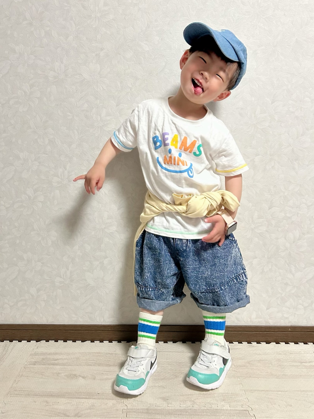 ご覧いただきありがとうございます◡̈⋆ BEAMS miniさんの スマイルロゴTシャツの着回しコーデ🥰 *大窓5枚あり レイヤードなしで、ロゴ、ステッチ の色拾ってイエローカーディガンを腰巻き💡 肩掛けver. 、カーディガンなしver.もあり💡 肩掛けをしてたら、違うと👦🏻に言われ、 自分で腰に巻きだしてこっちの方がロゴ良く見えてスッキリした👍´- 私がリボン結びしたら🎀←の下の袖を垂らすのも気に入らなかったみたいで、 自分でリボン🎀本体に巻き巻きin💡 カーディガンを羽織ってないのは母のだから🙈 🧢👖でデニデニ💡 ⌚️は👦🏻が着けたがっていたので、着けました💡 「お気に入りのTシャツと同じポーズ して~❣️」との母のムチャぶりにも しっかり応えてくれました😋🙌💕 Tシャツ1枚だとよりスマイルロゴの可愛さ、袖、裾のステッチの可愛さが際立つな❣️ ▷▶︎▷lenlen 3y6m 93.0cm 13.0kg (*3/8測定)