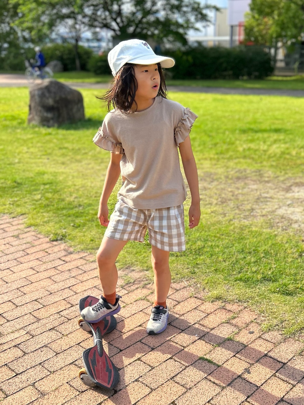 ご覧いただきありがとうございます- ̗̀ ☺︎ ̖́- 🏷#セットアップ 久しぶりの👧🏻ソロ🤗 👧🏻👦🏻と公園で週末遊んだ時のコーデ💡 4枚目に後ろ姿の👧🏻👦🏻 2人とも各々セットアップで全くリンクせず😆 👧🏻のはペアマノンさんの一昨年購入の ワッフルトップス×チェックショートパンツの異素材ルームウェアのセトア🤫 今年はジャストサイズで着れた🤗 なんというコスパ🤩 ▷▶︎▷rinrin 8y6m 126.5cm(*4月測定)