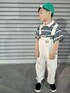 サロペ初2021.9.18投稿 小窓🪟🧢嫌〰️って泣いてる😅イヤイヤ期もあり部屋で帽子被るの嫌な時期だったかも。このラムネ大好きで撮影のお供でした😆 サロペのロールアップ具合に成長感じた🥹昨日撮影後にこの写真見て🖤💚🤍配色好きと気づく😆