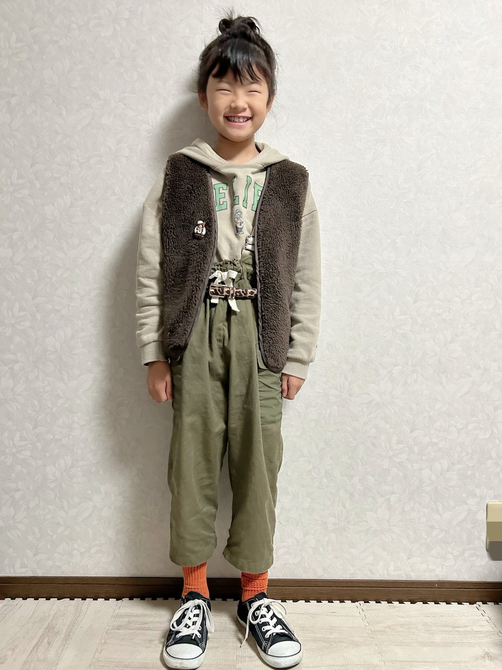 今日から12月🎄✨️ 今月もよろしくお願いします·͜·♡ 🏷#カジュアルコーデ 今日は大好きなakocoaちゃん こと、あこちゃんの追いコーデを親子で🙈 レオパ大好き🐆なので、 あこちゃんのGUのレオパベルトを見てすぐにGET❣️ 大好きな柿配色💚🧡にしてシミラールックルックで追わせてもらったよ😊 カーゴパンツ寸足らずなのはご愛嬌で🙈 新しいの買ってあげます😆 *大窓5枚あり 小窓🪟にコラ画を💝 👩🏽:あこちゃんと似たもこもこイヤリング🤎 イロチのGU×BPコラボボーダー🧦💚 だけど見えてない😅 パーカーは旦那さんから拝借🙈 初かも😆私で少し大きい位で旦那さん ピタピタかと思いきやジャストサイズ🤔 あこちゃんいつも仲良くしてくれてありがとう🥰 おしゃれで可愛いコーデが大好き♥️ ちょこんとシリーズや👓ポーズ、運転コーナーからこんにちは🤗、小物使い、可愛い🧦などいつも投稿楽しみにしてるよ🥰 お茶目で美人で優しくて楽しいあこちゃん♡ これからもよろしくね💕︎ そしてtetoさん(@sarizu)ことさりちゃん の森のおしゃれなくまさん🧸、りすさん🐿 を無事お迎えしました🥰 まずは🧸さんをボアベストに✨️ やっぱり可愛い🤎 これからも親子で大切に使わせてもらうね💕︎ ▶︎▷▶︎rinrin 9y0m 129cm(*9月測定)