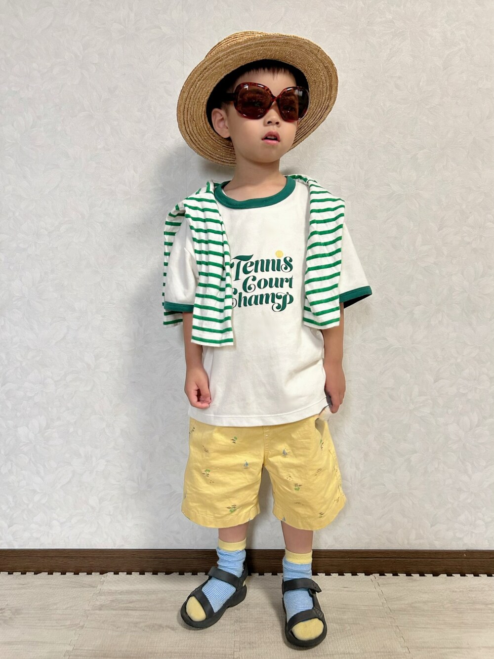 lenlen_rinrinのTシャツ/カットソー「エアリズムコットングラフィックTシャツ(半袖)120cm 990円」を使ったコーディネート