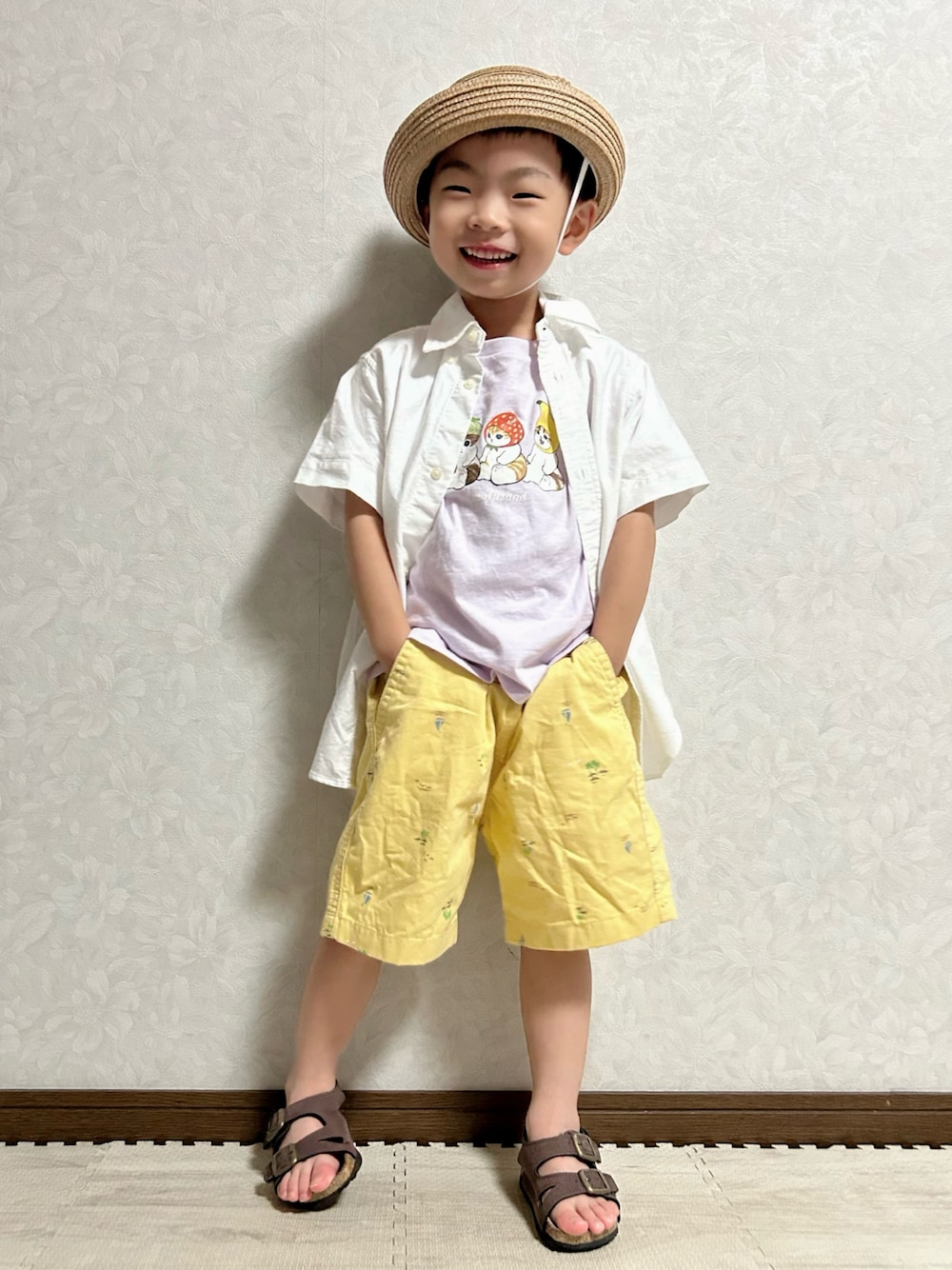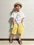 🏷#麦わら帽子 DAISOの猫耳🐱麦わら帽子と モフサンドのフルーツネコ達 合わせ🍈😸🍓😽🍌😻 ❀大窓3枚あり UNIQLOのmofusandのTシャツは GIRLSだけど白シャツ羽織ってチラ見せ で男の子も着やすい🙆♀️✨️ 淡💜×💛も白シャツ🤍で中和🥣 ͗ ͗ ブラウンサンド🥪🤎 UNIQLOのイージーショートパンツ がヨット⛵️とヤシの木🏝の総柄なので、 夏らしく麦わら帽子とブラウンサンダル にしてリゾートコーデのイメージ🌊🏝 海やプールにも良さそう💡 𝕋𝕙𝕒𝕟𝕜 𝕪𝕠𝕦 ❤︎" ▷▶︎▷lenlen 4y10m 101.9cm 14.9kg (*7/19測定)