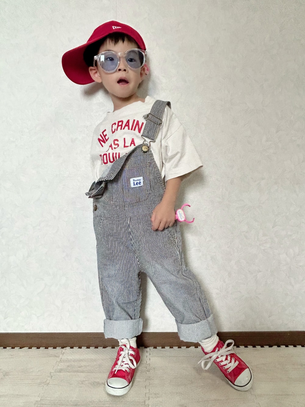 セカスト戦利品② Buddy LeeのヒッコリーオーバーオールをGET💡 まだ大きいから2-3年着られそう🤭 赤サンド🥪 ヒッコリーデニムと赤って合うよね👖❤️ *大窓5枚あり 1枚目:😎ワンショルしてロゴ見せ❣️ 2枚目:😎通常ver. 3枚目:通常ver. 🧢後ろ被り 4枚目:ワンショル 🧢後ろ被り 5枚目:斜め後ろ姿🫣 ロゴなしの真っ白なTシャツで シンプルにするかこのTシャツと迷って レンレンに選ばせたらこっちを選んだよ❣️ *小窓🪟 hasshi(ハッシー)さん(@hassi1983) 8/17投稿のセカスト講座で学んだタグの見方💡 割と入荷新しいBuddy Leeのオバオルを 半額でGETでき嬉しい♡ ハッシーありがとう🤗✨️ P.S ロゴの意味 Vieille amitié ne craint pas la rouille. ✨ 直訳だと「古い友情は錆を恐れない」 時が流れていても、古い友情は衰えないという意味です✌️ 旧友も大切にしたいし新しい出会いも 大切にしたい☺️✨️ 𝕋𝕙𝕒𝕟𝕜 𝕪𝕠𝕦 ❤︎" ▷▶︎▷lenlen 4y10m 103.4cm 14.4kg (*8/9測定)