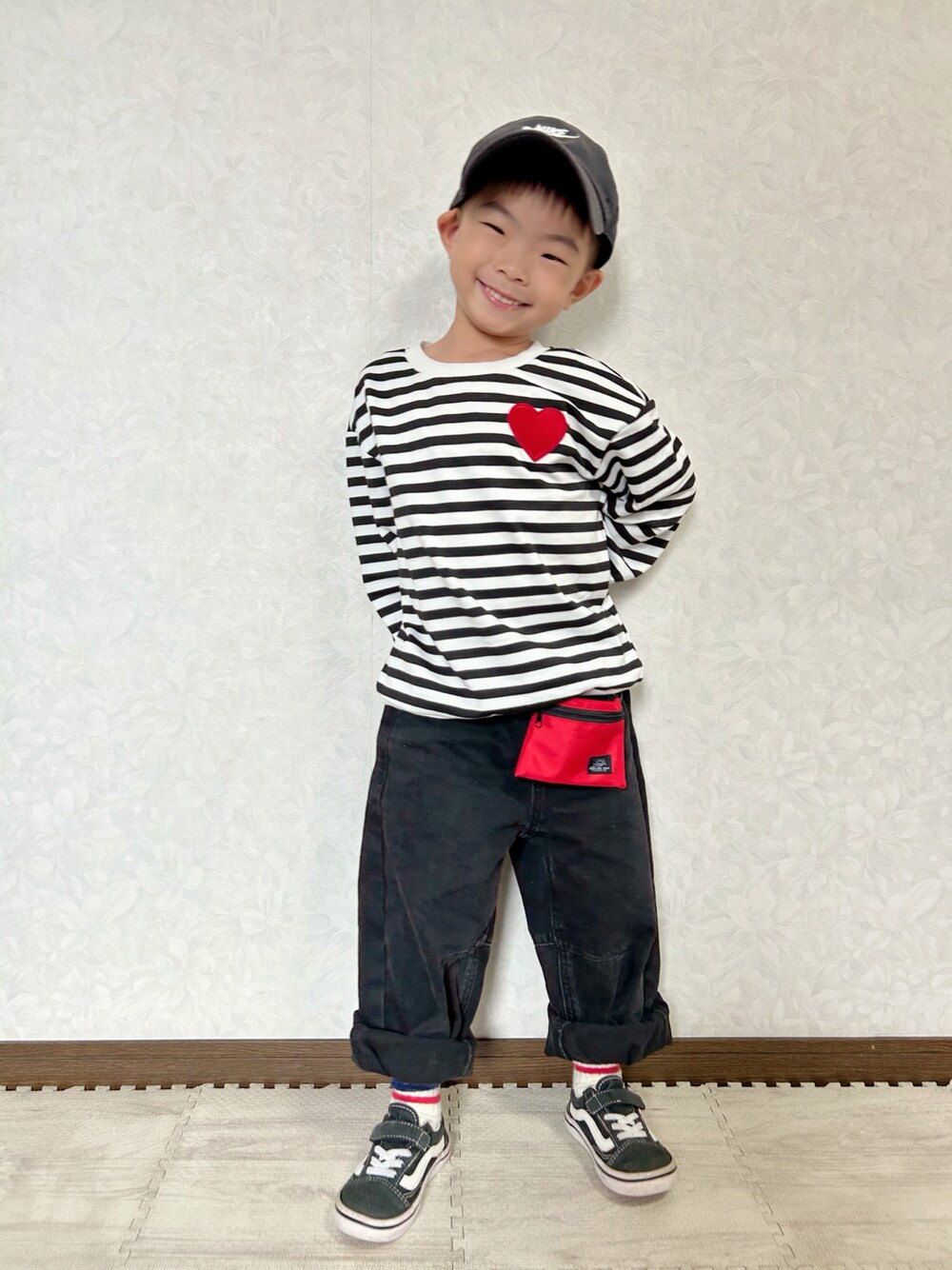 最近モノトーン再燃❤️🔥 昨日のEITOさん所のえいちゃんコーデどタイプ😍 で早速追わせてもらったよ😆❤️ ちょうど買ってた❤️ワッペンボーダーロンTで💡 コインケースのショルダー紐をベルトループに通して垂らしてみた😆 私のNIKE🧢🖤 VANSリンク 結構、兄弟感出たのでは⁉️ *大窓5枚あり *小窓🪟に ・私作コラ画🛹🛹 ・ミスド🍩 えいちゃんママのみーたんから レンレンの誕生日にいただいてた ミスドのギフトチケットで おやつにミスド食べたよ😋 本当にありがとう💖 えいちゃん1歳児とは思えないいつも 大人顔負けオシャレコーデ😍 指咥えポーズとのギャップがたまらない🥺💕 みーたんのセンスの良さ、 これからも参考にさせてね🥰 いつもありがとう🤗💕 明日から怒涛の5連勤💪✨ 撮りだめはあるからどこかで投稿したい🥺 明日はお休みします🥺 今月もありがとうございました✨ また10月もよろしくお願いします🙇 𝕋𝕙𝕒𝕟𝕜 𝕪𝕠𝕦 ❤︎" ▷▶︎▷lenlen 5y0m 102.8cm 14.5kg (*9/20測定)