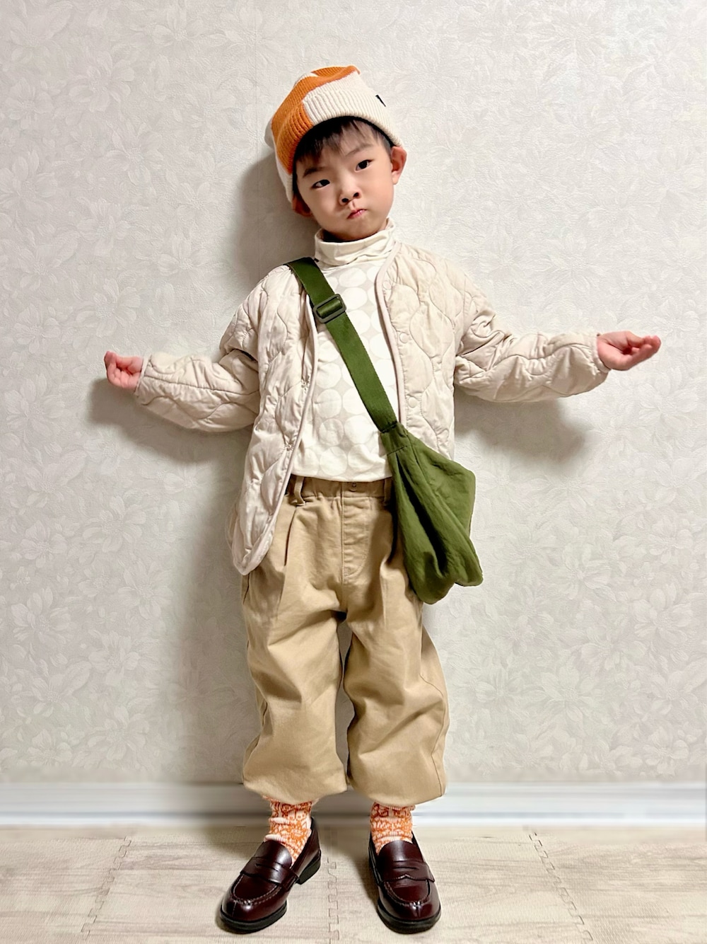 気づいたら昨日の投稿で1300投稿でした😆✨️ 昨日UNIQLO×marimekkoの新作発売日で オープンしてすぐ見て来ました✋ フリースカーディガンも欲しかったけど、似たのを 持っているのでクローゼット圧迫するから断念💦 ヒートテックのニット帽と靴下🧦のみ購入‼️ チノパンから靴下見せ🧦 かわいいデザインなのはもちろんのこと、 とっても着心地良くて暖かくて実用的🐑 息子早速お気に入り💖 いつも部屋の中では裸足の息子も 靴下脱がずにずっと履いてました💡 ついでに2024年元旦に発売されたヒートテックタートルネックTも購入🙆♀️ ローファー以外全部UNIQLOです💡 ❀大窓4枚あり 2枚目:帽子の柄見せ😆 𝕋𝕙𝕒𝕟𝕜 𝕪𝕠𝕦 ❤︎" ▷▶︎▷lenlen 5y1m 104.0cm 15.5kg (*10/24測定)