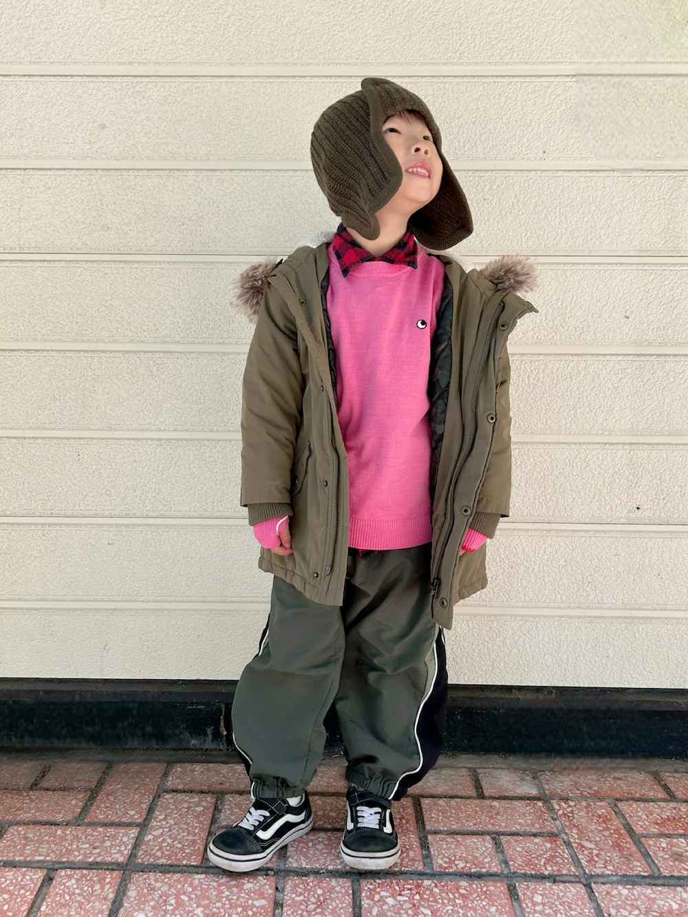 12/15投稿のアウター、帽子ありver. 髪カット前✂️ ミリタリーカジュアルコーデ👀🩷💚 *大窓4枚あり *小窓🪟 お座り後ろ姿 𝕋𝕙𝕒𝕟𝕜 𝕪𝕠𝕦 ❤︎" ▷▶︎▷lenlen 5y2m 105cm 15.2kg (*12/10測定)
