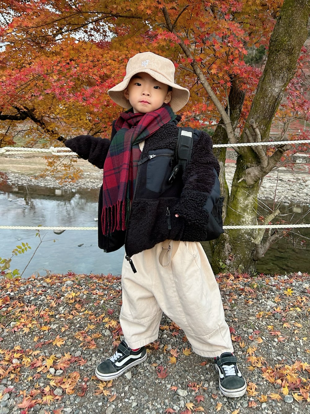 先週末、季節外れの紅葉狩りコーデ🍁 🏷️#マフラーぐるぐる ニューヨーク巻き🧣 *大窓5枚あり *小窓🪟 紅葉の様子を🍁 まだ紅葉してる所もあり紅葉祭りは終わっても人があまりおらずゆっくり楽しめました✨️ ❀UNIQLO 40周年記念コラボ *12/20発売 エンジニアドガーメンツ× ユニクロの復刻コンビネーションフリースジャケットはアウターで持っていない黒に🖤 ゆるっと着たくて 105cmで130cmに💡 2つのフリースでパッチワークになっててかっこいいデザイン✨️ 𝕋𝕙𝕒𝕟𝕜 𝕪𝕠𝕦 ❤︎" ▷▶︎▷lenlen 5y2m 105cm 15.2kg (*12/10測定)