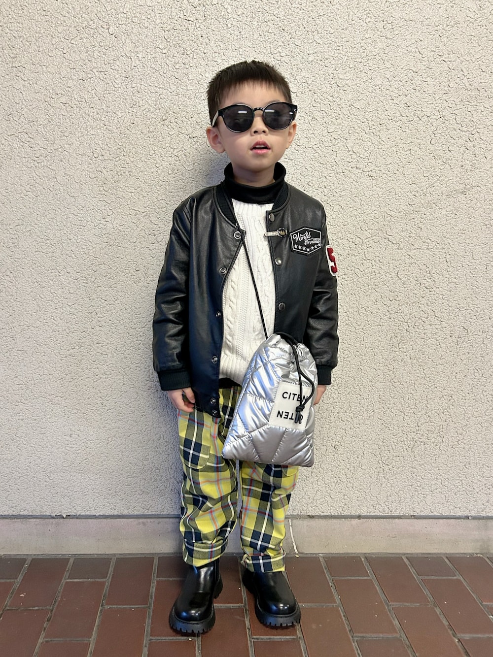 おしゃれでかわいいyuto@airiさんの所の あいりちゃんとnohana***kentさん の所のけんけんの追いリンクコーデ🖤🤍💛 お2人とも秋のコーデだけどタイミング逃して遅くなったので冬仕様で、黒タートルネックに白ケーブルニット🖤🤍 シルバーバッグ足し🩶 *大窓5枚あり なしver.はコーデスッキリ✨️ 年末に逃走中に観てサングラス😎かけて 逃走中ごっこしててハンターに憧れてる👦🏻 実家帰省コーデ 😎姿にびっくりされたけどジジババに カッコいいねって褒めてもらい上機嫌🎶 黒ニット帽被り忘れて久しぶりの帽子なし💡 黒タートルネック、リンリンのお下がりで メロウ襟だけど気にせず着てる😆 あいりちゃん、けんけん追いコーデさせて もらいありがとう☺️💖 これからもコーデ参考にさせてね☺️✨️ 𝕋𝕙𝕒𝕟𝕜 𝕪𝕠𝕦 ❤︎" ▷▶︎▷lenlen 5y3m 105cm 15.2kg (*12/10測定)
