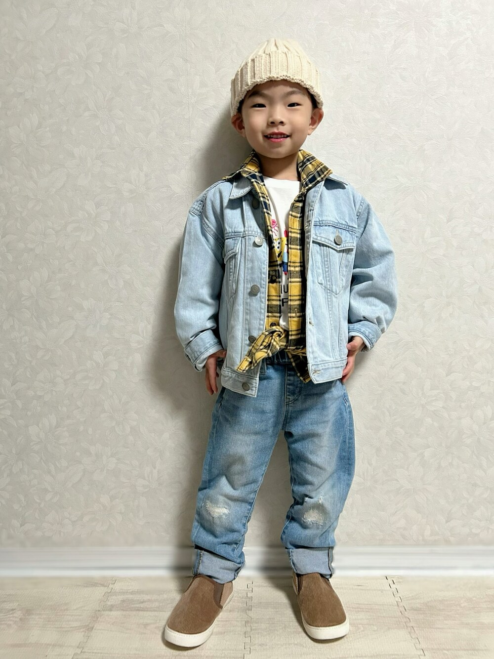 ダサかわ😆🩵 さりちゃん主催の 🏷️#デニ祭り🏮 デニデニで参加🙋♀️ STOさんの🏷️#デニデニ廻戦 タグ付けさせてもらいます🙋♀️ 1/14投稿のデニデニにインナー、小物を チェンジ💡して撮影してました😆 春カラーでもまだ寒いから、 フランネルチェックシャツinニット帽、 コーデュロイスリッポンで暖かく🐑 *大窓3枚あり 2枚目:フランネルチェックシャツなし NB👟 3枚目:デニジャケなしver. UNIQLOのスポンジ・ボブ カクタスプラント フリーマーケット UT をインナーに着てます🧽 レンレンスポンジボブも観るの好きでたまに 観てるからこのTシャツ喜んでました🥰🎶 𝕋𝕙𝕒𝕟𝕜 𝕪𝕠𝕦 ❤︎" ▷▶︎▷lenlen 5y4m 105.6cm 16.0kg (*1/23測定)