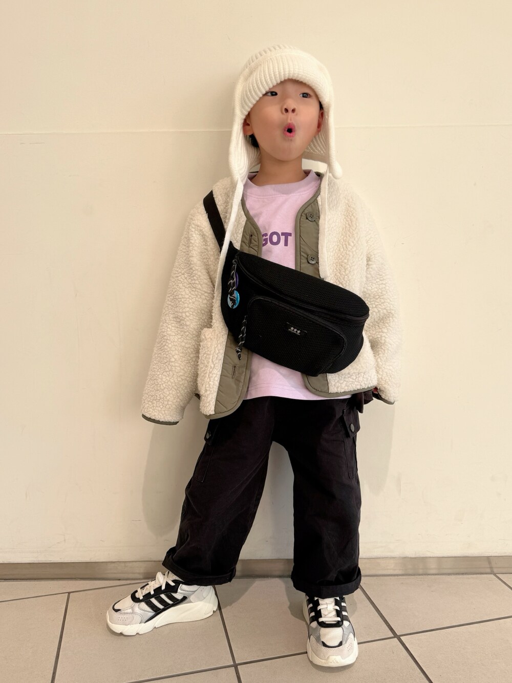 連投失礼します🙇♂️ ニット帽の紐垂らしたり結んだり💡 *大窓5枚あり 4枚目:前かがみポーズ👀 5枚目:バッグなしver. 黒カーディガンも着てます🖤 adidasの👟、クレイジーカオス2000 足が呼吸できる通気性に優れたメッシュ アッパーと、枕のようなソフトな感触が 得られる👟 だそうでレンレンも早速お気に入りに❣️ 保育園に履いて行く!と意気込んでたけど、 保育園用の👟にするとあっという間に 汚れるから今は瞬足履いてもらってます😆 𝕋𝕙𝕒𝕟𝕜 𝕪𝕠𝕦 ❤︎" ▷▶︎▷lenlen 5y4m 105.6cm 16.0kg (*1/23測定)