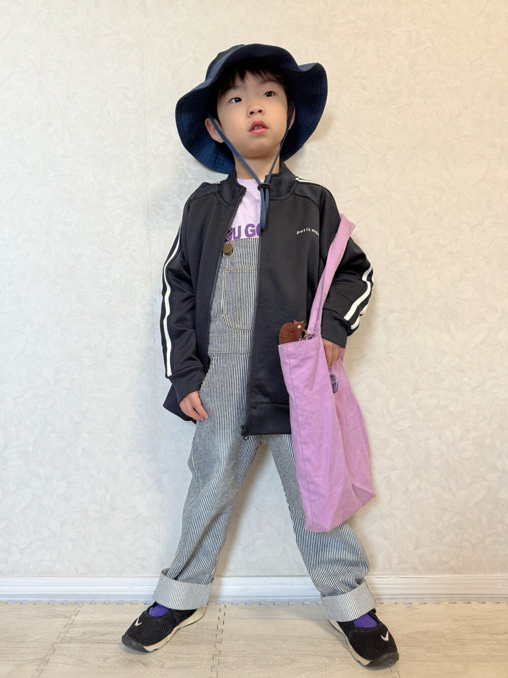lenlen_rinrinのハット「男の子幼児 ツートーン サンハット ネイビーブルー 470円」を使ったコーディネート