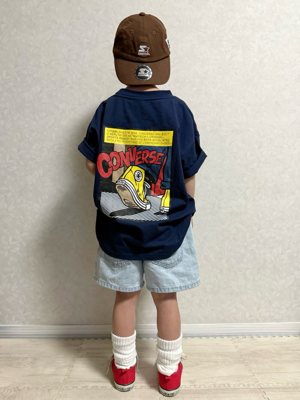 オシャレキッズのharu__maaさん所の まーくんと、 ちょうど1年1ヶ月ぶりのコラボ🤩💡 yo_yoさん所のよーくんママ、デザインの コンバース Tシャツ💙 やっぱりめっちゃかわいい😍 🧢がおソロでコラボしたいなって大分前から 話してて、コンバースTもおソロになり 結局、全身おソロでコーデ組んだよ🤩 全身リンクコーデ🔗 *🧢:STARTER🤎 *👚:コンバースT💙 *🩳:UNIQLO 🩵 *🧦:UNIQLO🤍 *👟:コンバース❤️ *大窓5枚あり 2枚目:まーくんママみずほちゃん作コラ画💛 3-4枚目:私作コラ画 5枚目:レンレンソロ タックインver. みずほちゃん、まーくん、コラボしてくれて ありがとう🥰 レンレン👦🏻ちゃんとみずほちゃん親子3人に 会ったの覚えてて、撮影楽しんでたよ🎶 コラ画のセリフは👦🏻が本当に言ってたよー🤗 いつか本当に再会できるの楽しみにしてるね✨ またリンクコーデもしようね🌼 𝕋𝕙𝕒𝕟𝕜 𝕪𝕠𝕦 ❤︎" ▷▶︎▷lenlen 5y6m 107.0cm 17.1kg (*4/18測定)