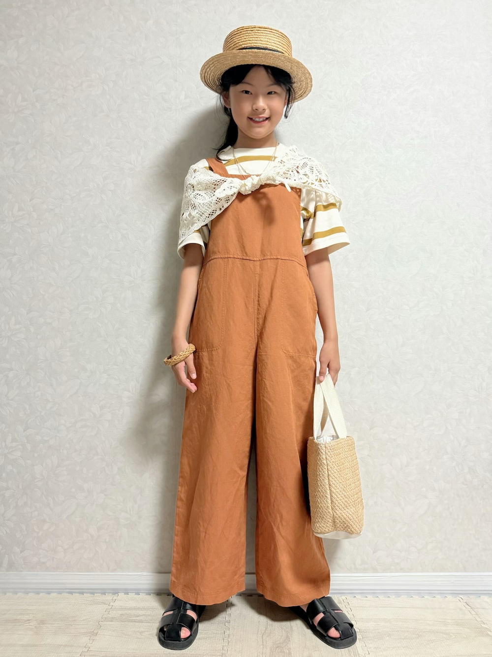クロシェスカーフアレンジ2選❣️ *大窓4枚あり 2,4枚目:スカーフ腰巻き 前後ろ🧣かごバッグ🧺 1,3枚目:スカーフセーラーカラー風巻き 前後ろ🧣 動いてスカーフ傾いてるけど、セーラーカラー風の方がまとまりあるかなと思ってこちらを大窓に💡 スカーフアレンジも楽しみたい🎶 #pr 𝕋𝕙𝕒𝕟𝕜 𝕪𝕠𝕦 ❤︎" ▶︎▷▶︎rinrin 10y7m 138cm(*4月測定)