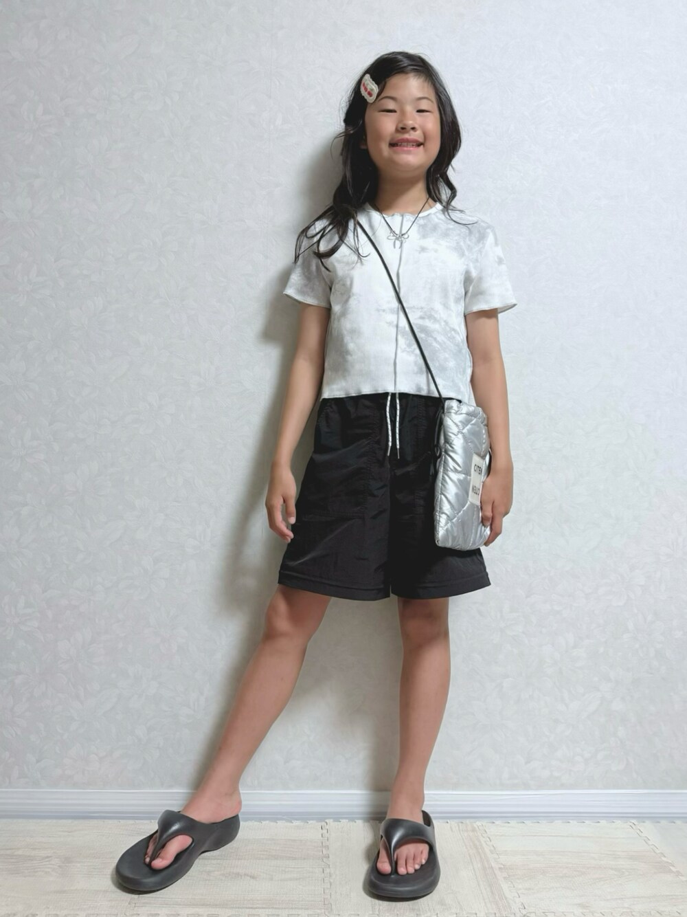 少し前の撮りだめより。 シンプルなので🍒ヘアクリップ、 🎀ネックレス、 シルバーバッグでアクセント🥈 *大窓2枚あり ヘアクリップ、ネックレスなしの超シンプル💡 𝕋𝕙𝕒𝕟𝕜 𝕪𝕠𝕦 ❤︎" ▶︎▷▶︎rinrin 10y8m 140cm(*7月測定)
