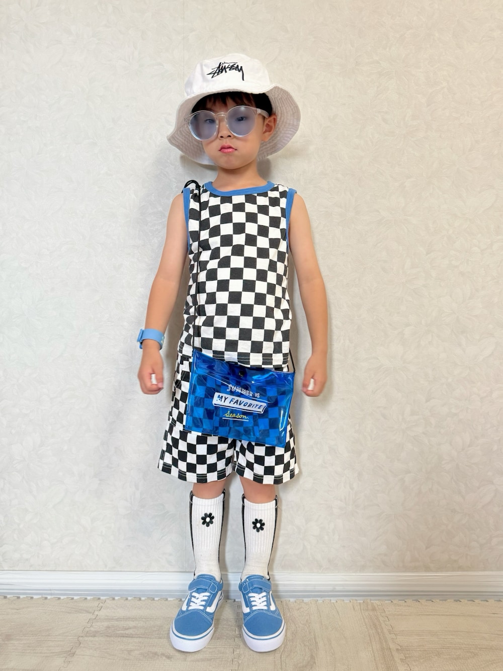 さりちゃん主催 #トリックアートフェスに参加🙋♀️ 皆さんの投稿を見てたら、 セトア風の服あるのを思い出し早速、撮影📸✨️ チェッカーフラッグの タンクトップとハーフパンツで まるでセットアップ🏁 *大窓5枚あり 2枚目:コラ画🏁 レンレン背景と同化🤣🏁 🏁の世界に吸い寄せられそう😆 目がチカチカ👀💦 3-4枚目:👦🏻にトリックアートリクエストしたら 目隠し🙈→🎩消える🫧 トリッキー😂 5枚目:後ろ姿もセトアっぽい💡 *小窓🪟 お時間ある方は、 トリックアート(隠し絵)もお楽しみください🥰 小窓タップして見ると隠し絵に👀✨ 🖼貼ったら既に答えの動物浮き上がって見えてた😅 動画もぜひ観てね✨ 𝕋𝕙𝕒𝕟𝕜 𝕪𝕠𝕦 ❤︎" ▷▶︎▷lenlen 5y10m 109.3cm 16.5kg (*7/14測定)