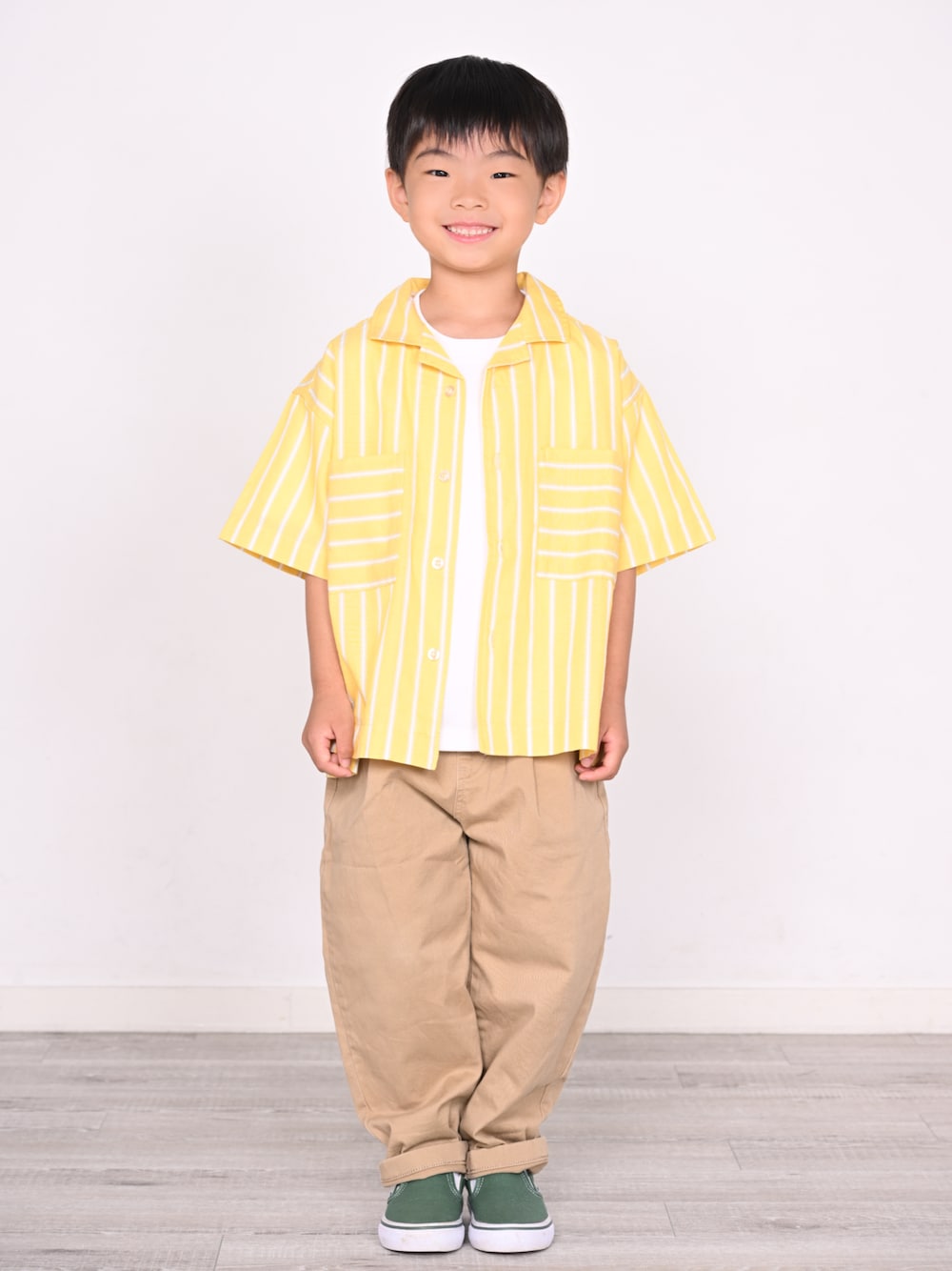 lenlen_rinrinのシャツ/ブラウス「【ジュニア対応】ストライプワイド半袖シャツ」を使ったコーディネート