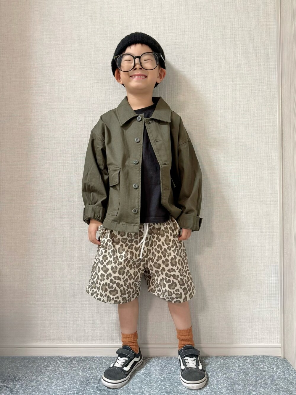今日のリアルコーデ💡(ジャケットなし) アースカラー / ストリートMIX🛹🐆 昨日、9/13投稿のhasshi(ハッシー)さん @hassi1983の追いコーデ💡 見た瞬間、かっこいい🤩 レンレンも追いた〰️い💡と思って 今日のコーデに決まったよ😆 レオパードロングパンツがサイズアウトして今ないので、 手持ちのハーフパンツver. ちょうどGUのワークジャケットをGETしてたので、 長袖ジャケット×ハーパンで秋コーデに🍁 サングラス🕶忘れて母のめがねを掛けてます😆🤓 実家帰省先にて📸 31🍨に行って並んでたら後ろの兄弟が、 黒T ×レオパードハーパンでリンクコーデ してて兄弟がレンレンをジロジロ見てた😆 私もジロジロ見ちゃった🙈 *大窓1枚のみ *小窓🪟 流行りのフィギュア化の2人😎🤓 リアル😆 ハッシー追いコーデさせてもらいありがとうございました🙇♂️ これからもストリートコーデ参考にさせてね✍️✨️ 𝕋𝕙𝕒𝕟𝕜 𝕪𝕠𝕦 ❤︎" ▷▶︎▷lenlen 5y11m 109.3cm 16.5kg (*7/14測定)