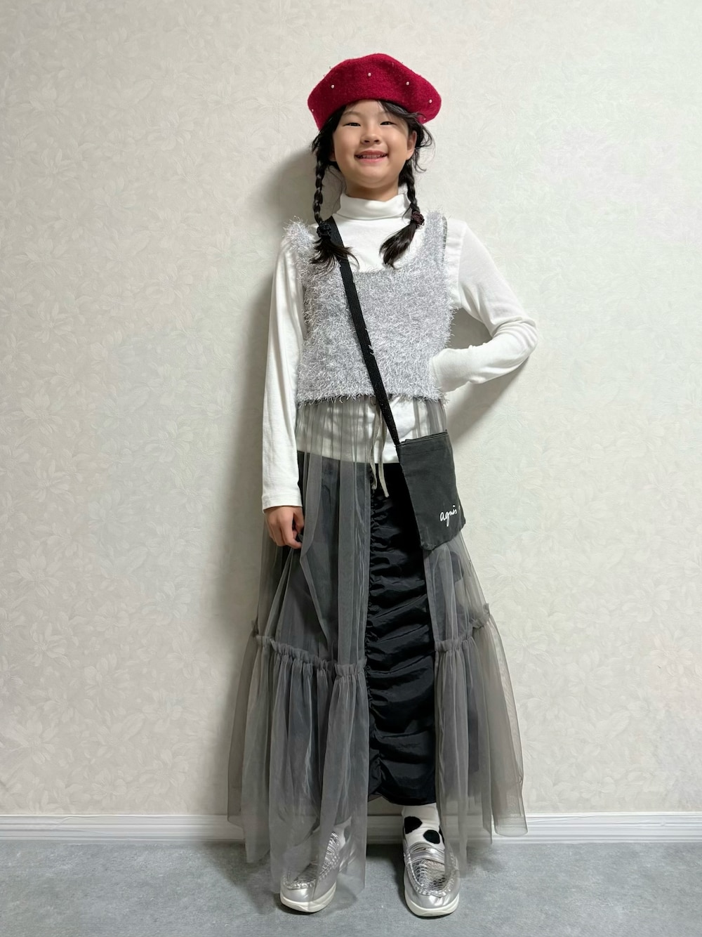 ビスチェ着回しコーデ💡 agnes b.のショルダーバッグと🧦合わせ💡 大きめドット🧦と赤ベレー帽をアクセントに⚫️❤️ *大窓3枚あり 3枚目:後ろ姿 チュールキャミワンピが前後着なので 逆でも良かったかもです😆 ぱぴちゃんが10/3にさらに追ってくれ、 リレーバトン4回目😆 トラックパンツ⇒グレーチュールスカート 合わせ可愛かった💡 詳しくは、ぱぴちゃんの投稿をご覧ください❣️ ぱぴちゃん@papiruma 𝕋𝕙𝕒𝕟𝕜 𝕪𝕠𝕦 ❤︎" ▶︎▷▶︎rinrin 10y10m 141cm(*9月測定)