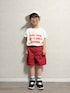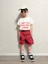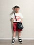 LOWRYS FARMのロゴTを購入❣️ 赤ショーツを合わせて元気な春夏コーデ☀️ タックイン+袖ロールアップで バランスよくすっきり見え◎ さらにショルダーバッグで ストリート感をプラス🖤 動きやすくて 公園やお出かけ、通学にもぴったりなコーデです✨ ▶︎▷lenlen 6y5m / 112.7cm