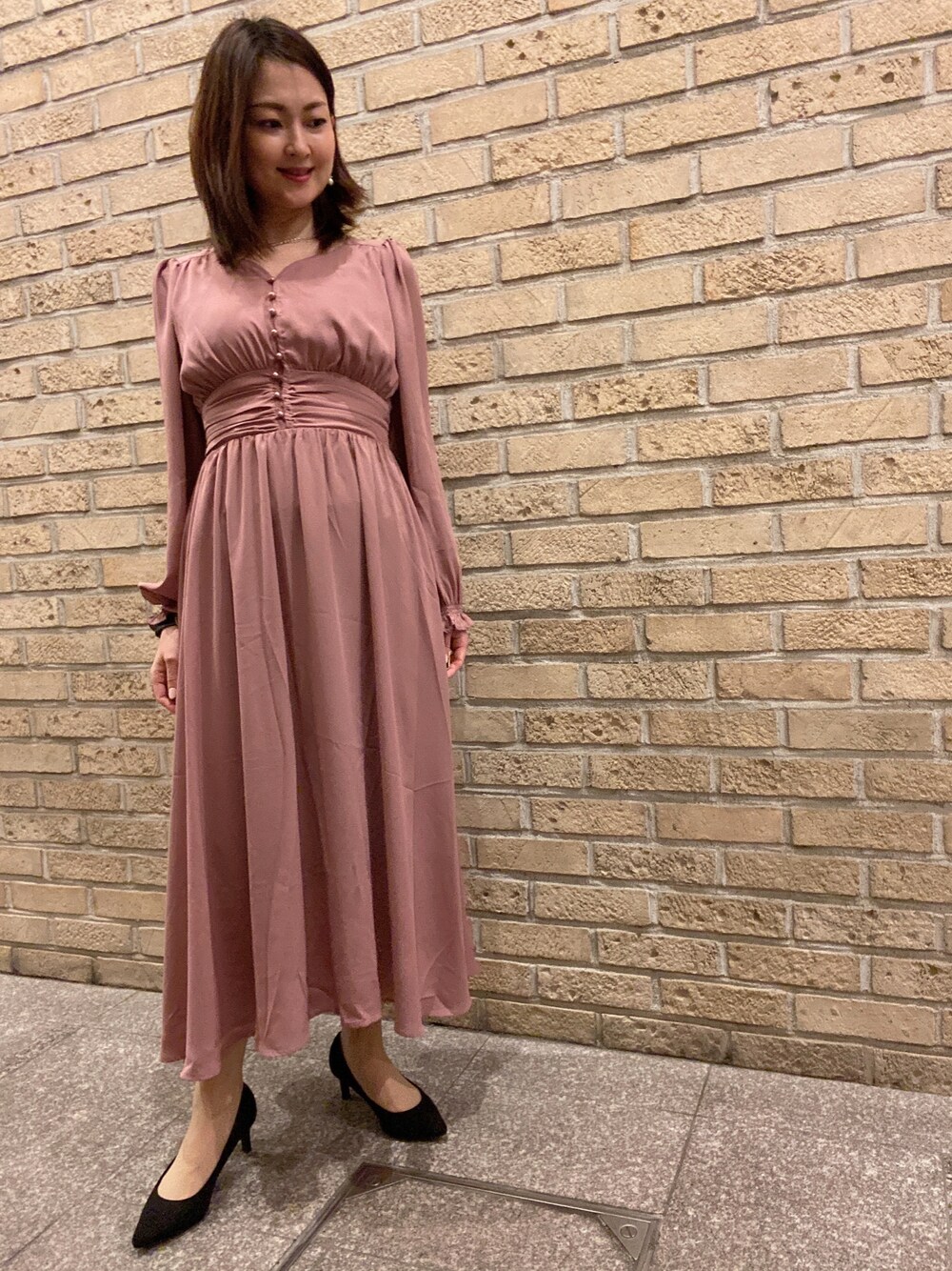 玲央のワンピース「長袖パフスリーブマキシワンピース」を使ったコーディネート