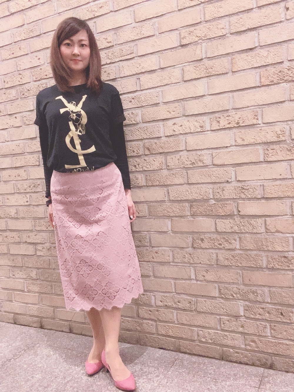 友達に誘っていただきDRAGON GATE@後楽園ホール大会を観戦しました🐉 いつも観てる新日とはまた違ったマイクパフォーマンス多めのルチャ要素多めのプロレスで新鮮で楽しかったです ■トップスはhaominのなんちゃってYSLなパイルドライバーTシャツ 女子プロレスラーがツームストンパイルドライバー掛けてるモチーフのTシャツ🖤 黒×金でかわいい 一緒に観戦した友達も黒×金のキックボクシングモチーフのTシャツで事前の合わせもなかったそうですのになんとなくシミラーコーデで笑っちゃいました😂 Tシャツが大きめのサイズ感なのでタックインしてプロレスモチーフを出すため前の裾だけ少し多めに出してます 袖は2折りしてます なるべくコンパクトなシルエットにしたいので ■ボトムスはAGの淡ピンクレースタイトスカート トップスがかっこいい系なのでボトムはキレイ系にしてギャップ萌えを企みました😎 ■ピアスはハートゴールドピアス 同じ日に推しの棚橋さんは広島でNEVERの6人タッグのタイトルマッチだったんです! ハートモチーフは棚橋グッズなので応援の気持ちを込めてハートモチーフのピアスを。ドラゲー観戦しながら新日の公式サイトで試合結果は追ってました!一推しは新日本プロレスで棚橋弘至選手なので…☝️