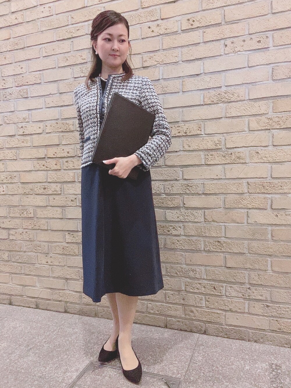 ブライダルのおしごと。難しい。 ヘアアレンジしてハーフアップ。髪が邪魔にならず集中力増すので良い。 ■23区のフォーマルスーツ ブルベ得意な紺のスーツ。似合ってるし(自画自賛)キリッとした仕事できそう(に見える)。 ■アクセサリーはMIKIMOTOのパールのピアスとネックレス 三重出身なのでMIKIMOTOのパールアクセサリーはここぞという時身につける御守りです✨
