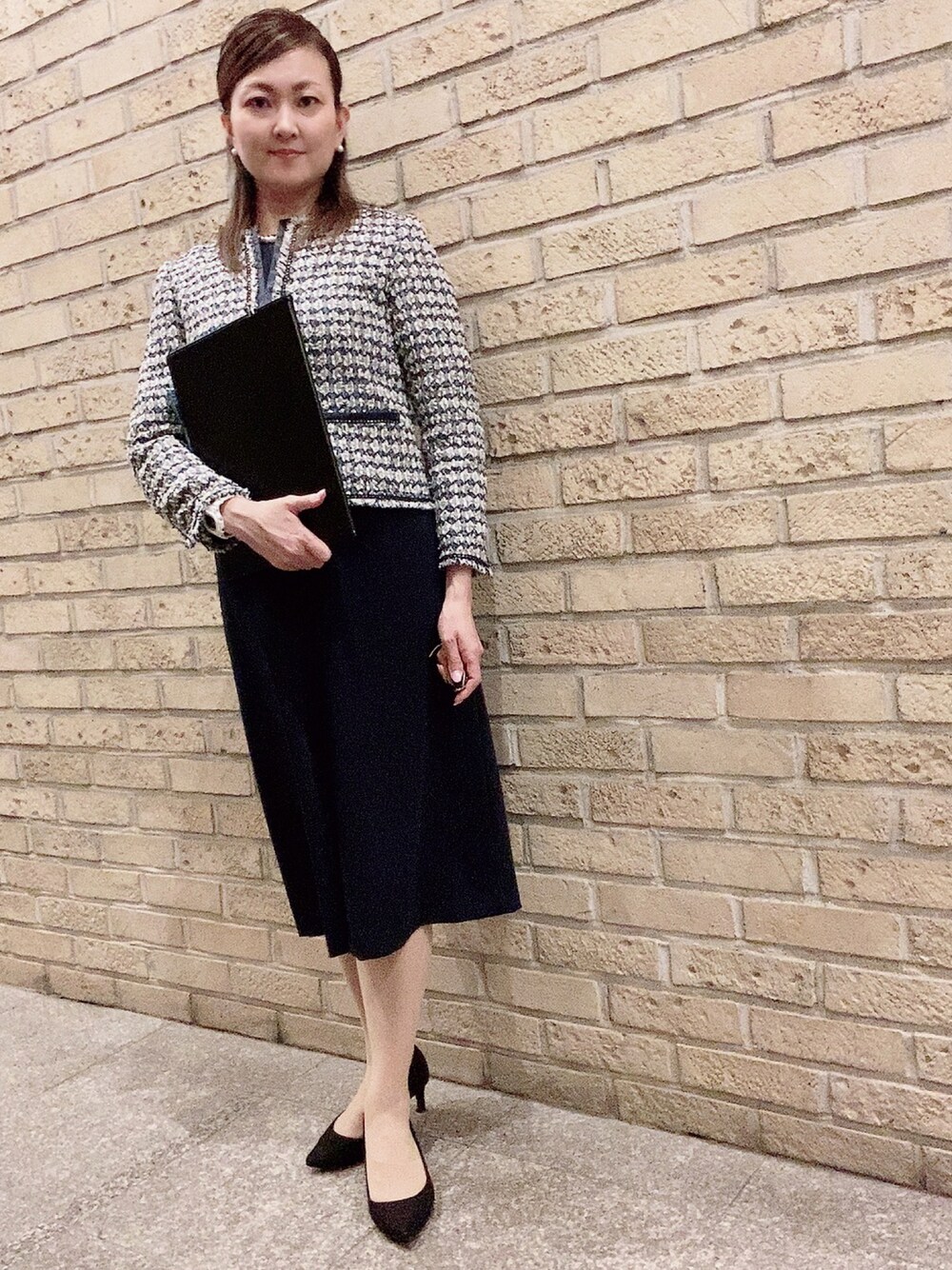 お仕事コーデ 備忘録として ヘアアレンジのハーフアップくるりんぱした時のワニクリップはもうちょい上のは左右交わったところ辺りにつけるともっとバランスいいかも 夏はこのセットアップ暑い…🌻 会場裏はクーラーも効いてないのでヤバい熱さ…💦 水分補給してがんばろう…