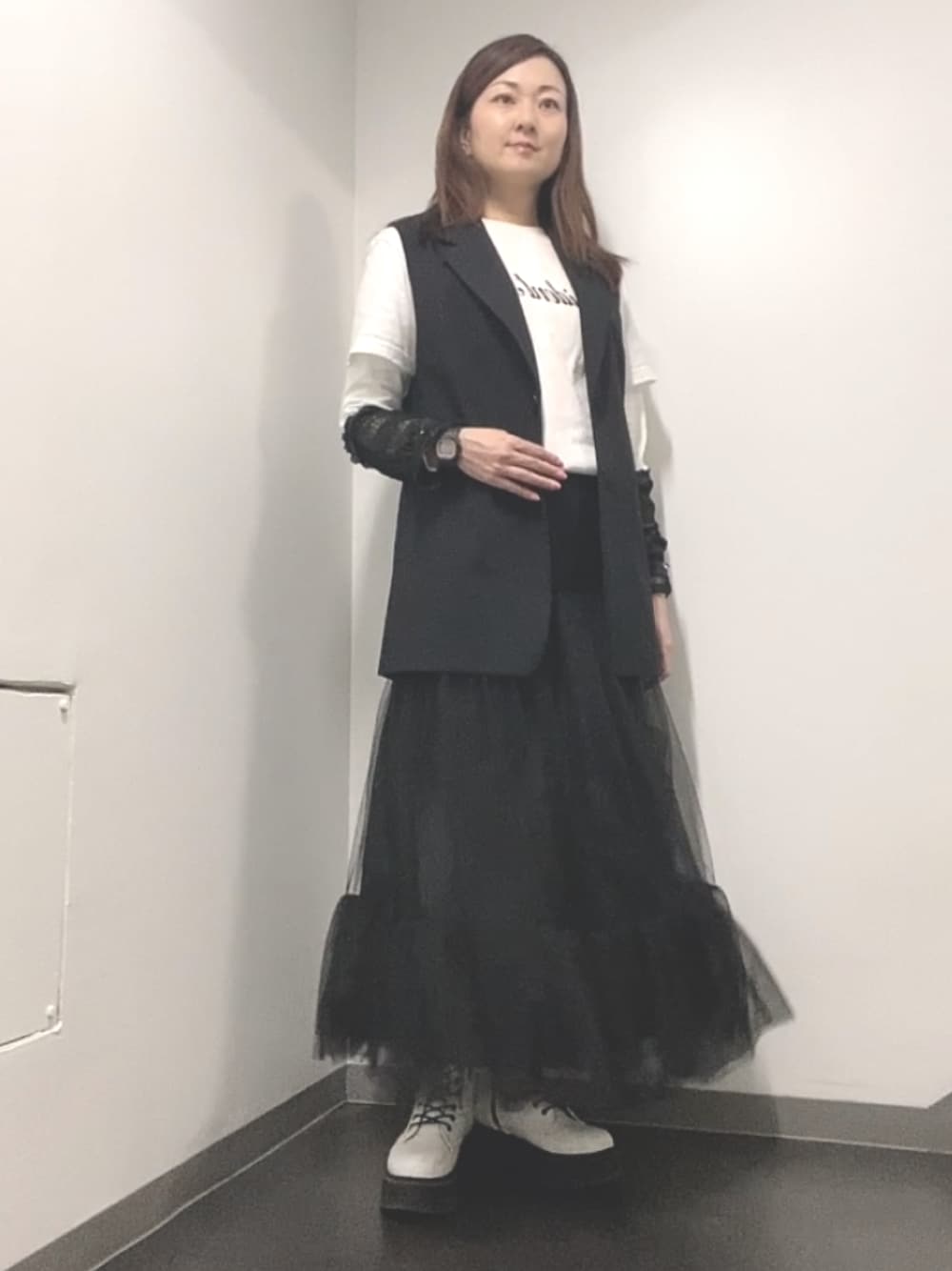 映画の先行上映会コーデ🤍🖤🤍️🖤🤍 棚橋さんバウンドで、社長Tシャツにテーラードベストで棚橋社長に寄せて、アームカバーに白いブーツでリング上の棚橋選手コスチュームに寄せてみた😆 最近購入したチュールティアードスカートが着られて嬉しい🫶🏻 映画アイアンクローの先行上映会に行ってきました。 上映前には棚橋弘至選手と有田哲平さんのトークショー!現役プロレスラーとプロレス大好き芸人の有田哲平さんと有田さんと同世代の清野アナウンサーの80年代アメリカンプロレスやいまのプロレスについてなど熱量高めなトークをたっぷりと聞けてめちゃめちゃ楽しかったです😆 ハーリー・レイスやリック・フレアーなど名前は聞いた事あるけどよくは知らない選手が活躍した時代について知ることができたり、いまの日本のプロレスに通ずる背景なども分かって面白い内容でした。日本でもチャンピオンが判官贔屓で応援されないのは謎だったんですが、アメリカンプロレスから脈々と受け継がれたプロレスの歴史があるんだろうなぁと感じた✨ ヘビー級に重い内容でしたが、棚橋さんがトークショーの結びに「この物語を悲劇と捉えるかどうかは貴方次第」と言ってたのが救いになった🥹 数々の悲しみを乗り越えて最後ケビンは幸せを掴んだんだと私は感じました。 会場は80年代アメリカンプロレス好きな男性が多くて、新日のファン層とはまた少し違っていて新鮮でした。有田さんのYouTube観てる方も多いんだろうな…! 棚橋コーデ 153