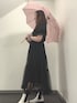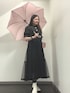 濡れてもすぐ乾くようにポリエステル素材のワンピースにしました。 スカート部分はチュールになってるんですがチュールも乾きやすい。 眞白ありすさんコラボのこのワンピースはチュールの裾がレースになっててかわいい🖤⋆͛*͛ 台風、被害少なく通り抜けてくれますように🙏