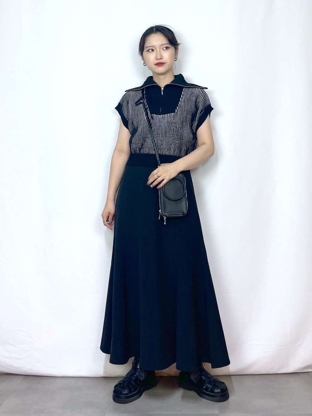 Natsukii/나츠키(PAGEBOY新宿ルミネエスト店)のニット/セーター「CORE / ZIPショートニットプルオーバー」を使ったコーディネート