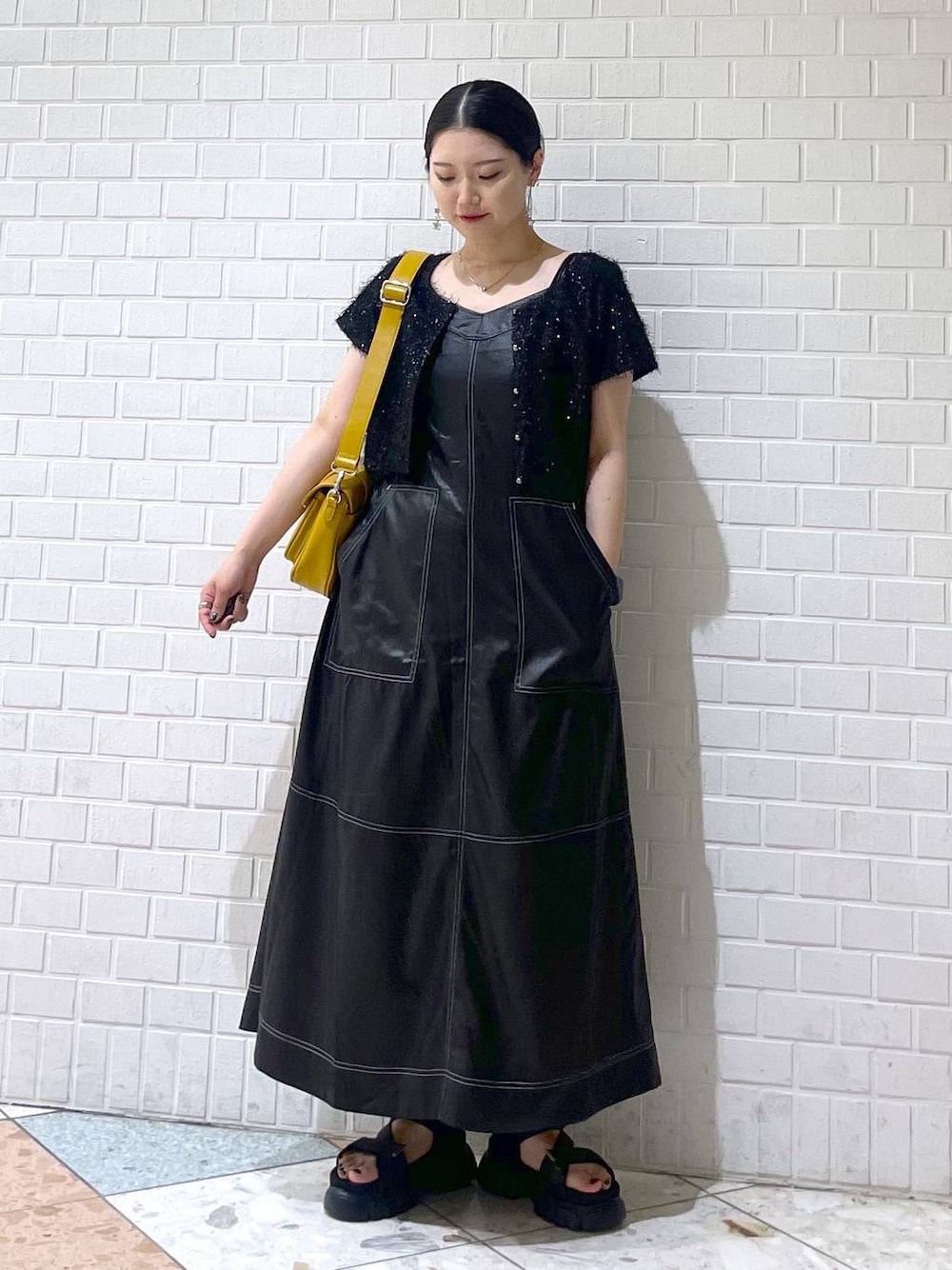 ご覧いただきありがとうございます☺︎ リアルバイしたこの激かわワンピ❤️🔥 レザーライクな生地なので夏場でも着やすいアイテムです!インナー次第ではオールシーズン着れるのでオススメ✨
