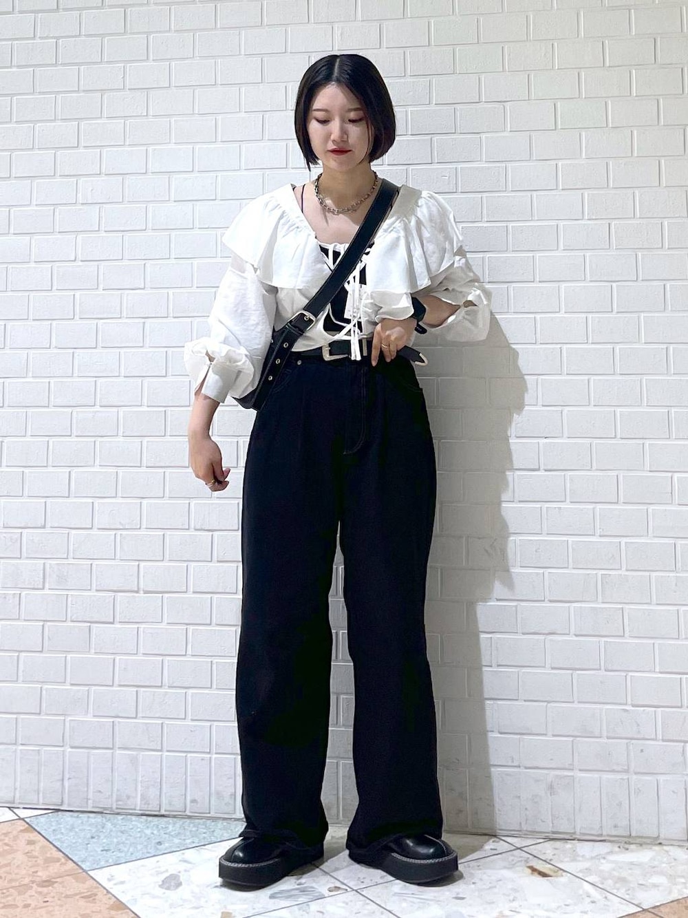 ご覧いただきありがとうございます☺︎ ブラウスが店頭でもスペシャルプライスに🤝🏻✨ 前後ろ両方使えて、インナー次第では夏以外使える万能アイテム!! 大きめのフリルと、インナーでアレンジできるので甘過ぎずに着れます◎