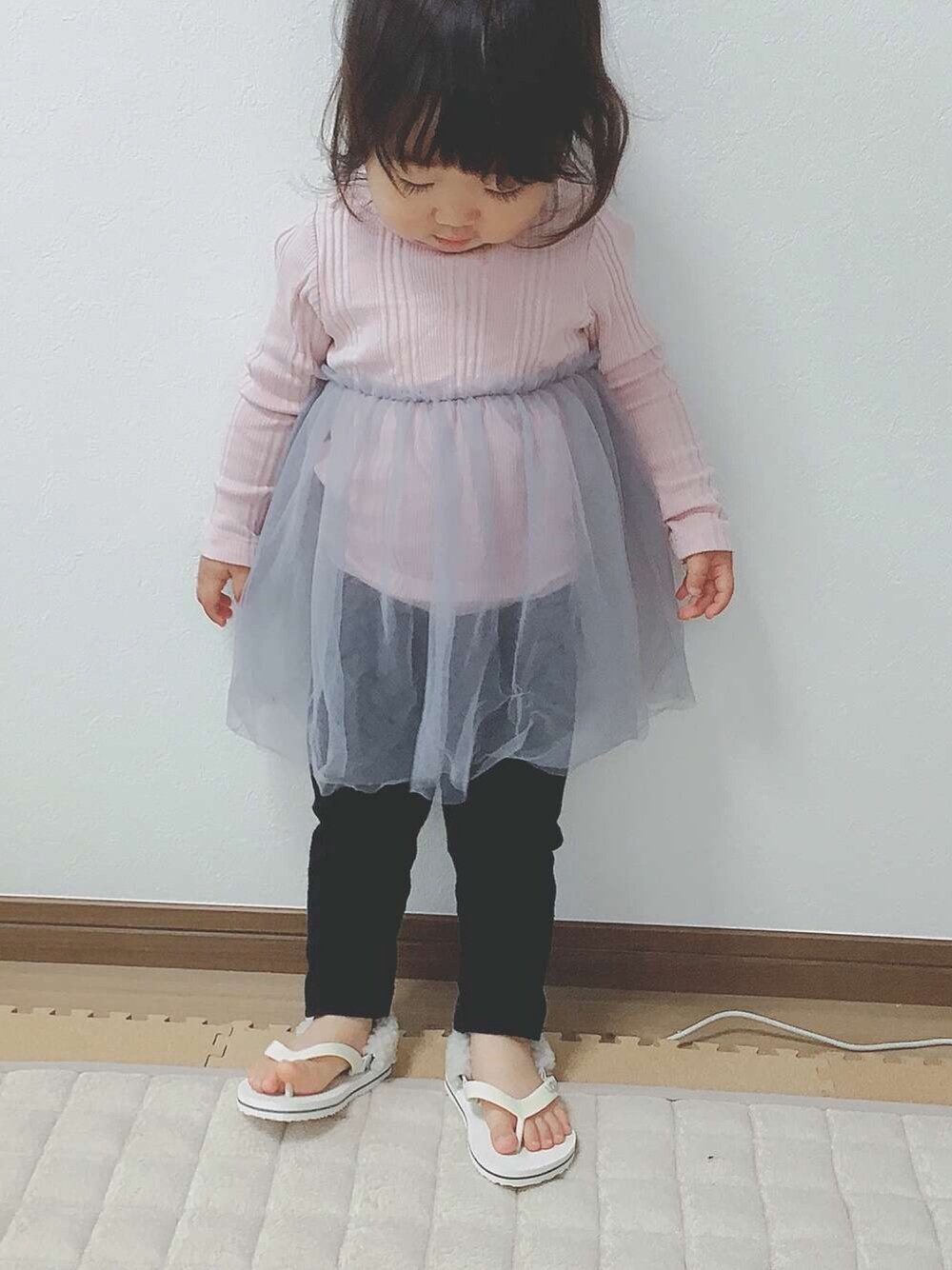 ご覧くださりありがとうございます😊 この日は雨でお外に行けないので チュールトップス😊笑 お外に行くと暴れてチュールがほつれまくるのが目に見えているので、室内で遊べる子育てサロンに着せて行きました😊 まぁ室内でも暴れるんですが😅 でもやっぱり大人数になると恥ずかしいのか不安になるのか、気になるお遊び以外はずっと指をくわえて部屋をウロウロ、優し〜〜いよそのお母さんにつきまとう😅 子ども同士で遊ぶのってもう少し先なのかな〜?🤔 ♡、セーブ、フォローありがとうございます😊 コメント、お気軽にいただけると嬉しいです🙌✨