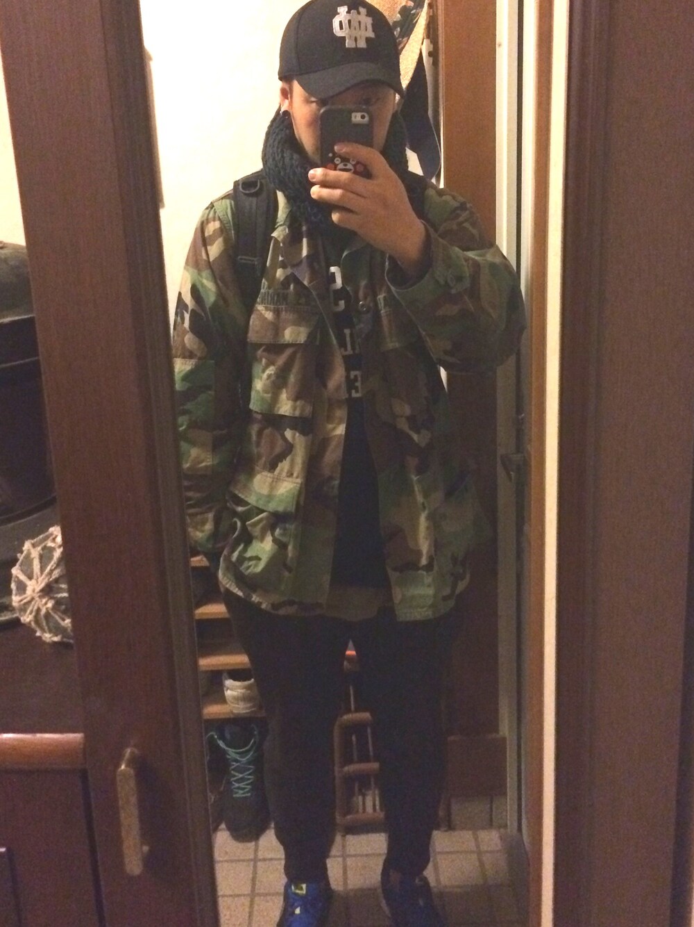 お久しぶりーふ👙 クソ寒いっすね! つーわけでマフモコ! じじーだからマフモコじゃない😂笑 アーミーシャツは反戦🙅‍♂️ 世界平和🐦広島魂⛩
