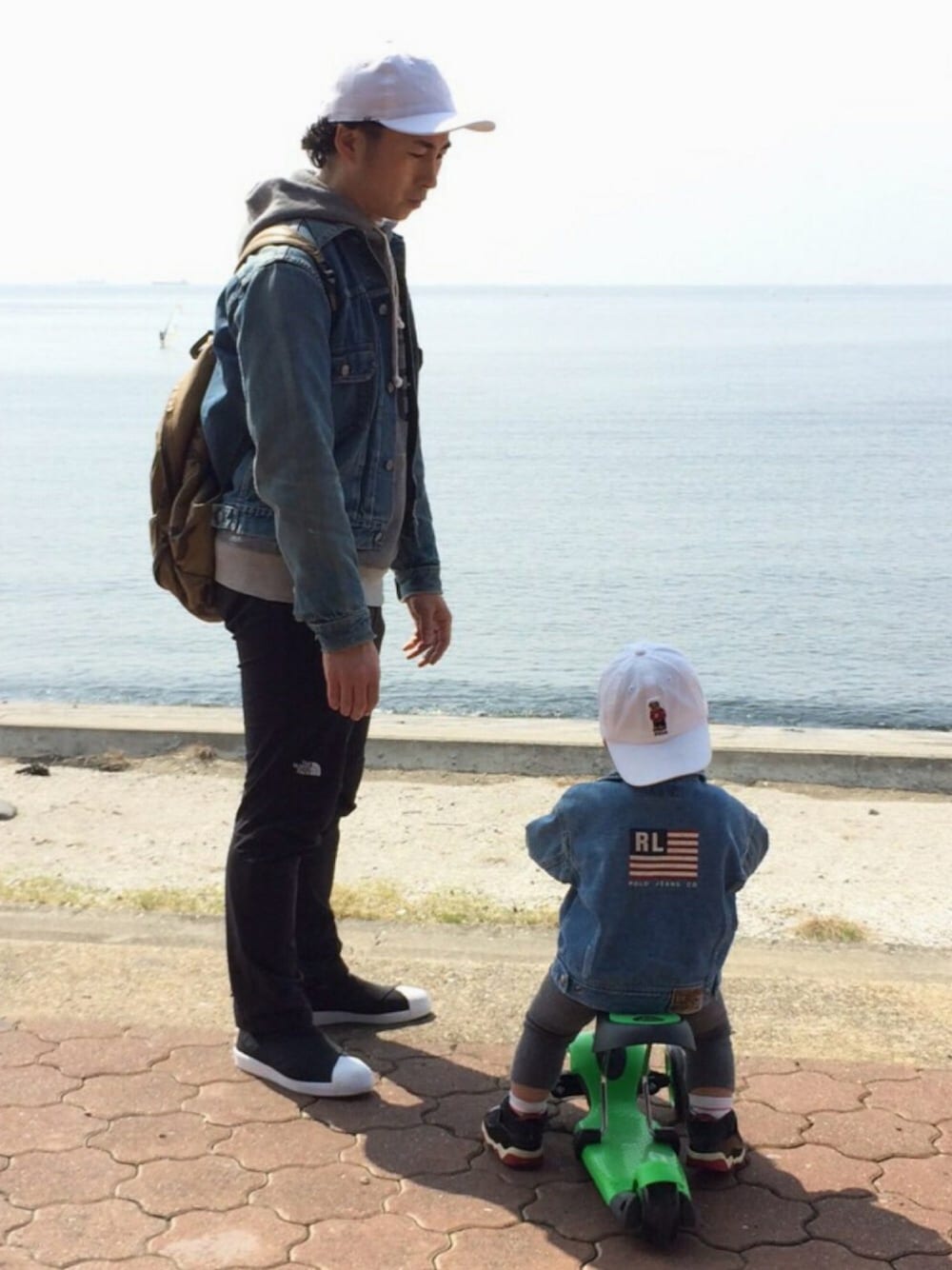 Gジャン✖️白キャンプで親子コーデで海を眺める。