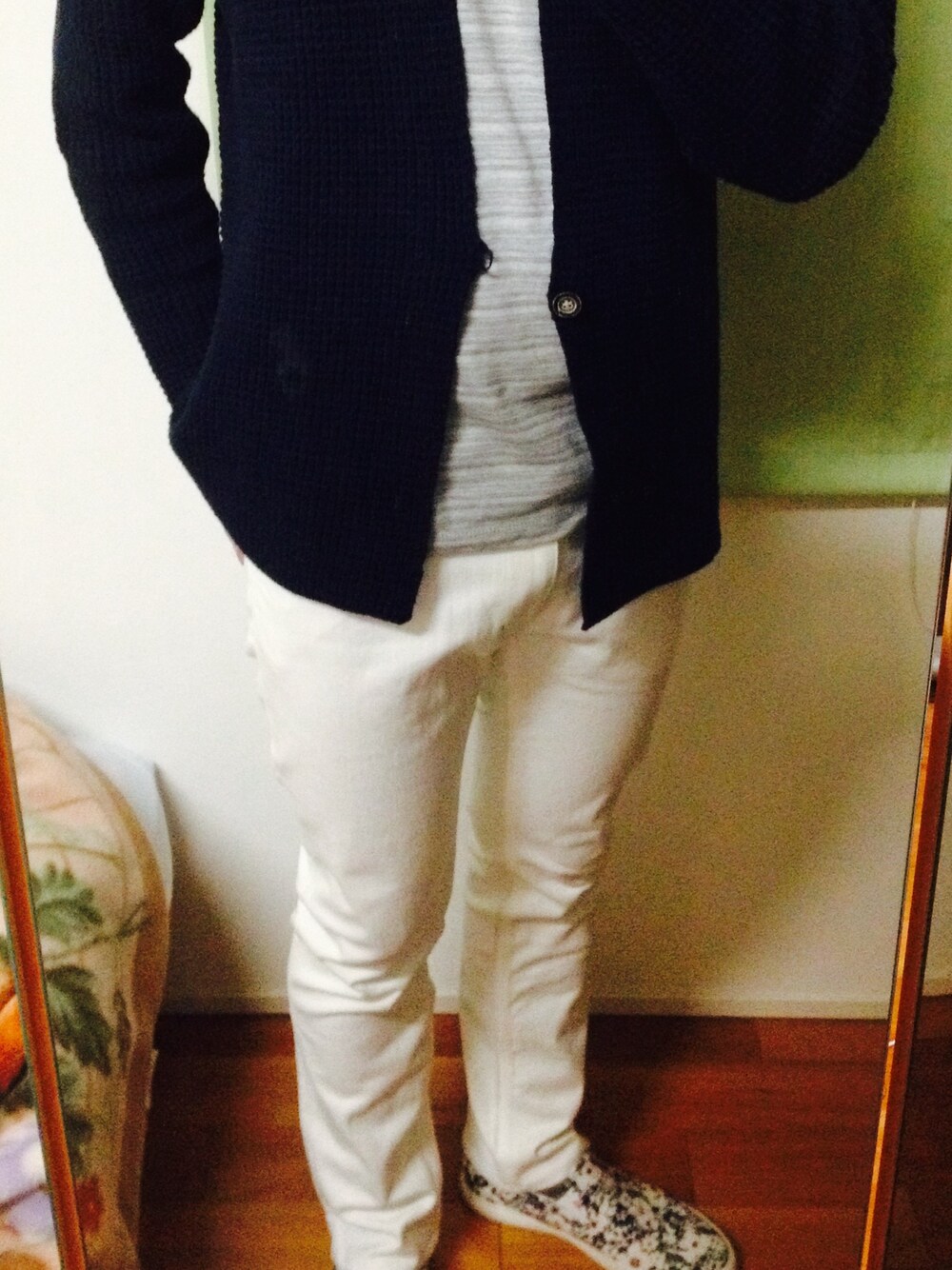 人生初の白パンに挑戦! なので他のアイテムはシンプルに、靴だけ少し派手な物にしてみました。
