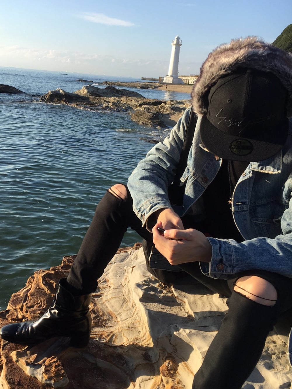 彼女とのデートの時に美浜で撮ってもらいました。なかなか上手く撮れてて感動 このキャップは限定のヨウジヤマモト