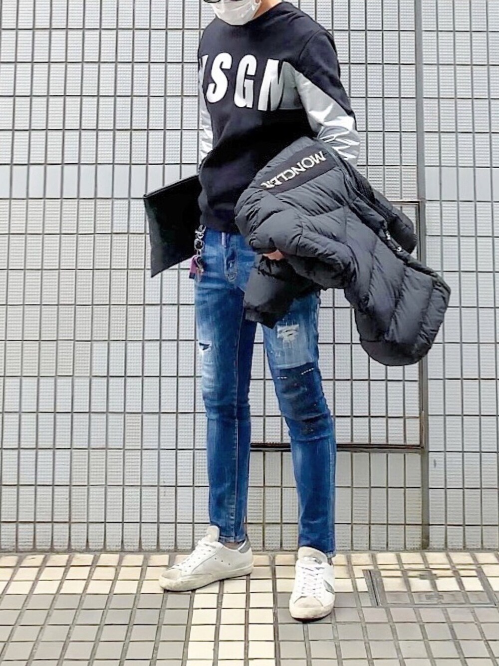 レ オ ンのデニムパンツ「Pamts 5 pockets /Skater jean /Light worked slash wash /0182」を使ったコーディネート