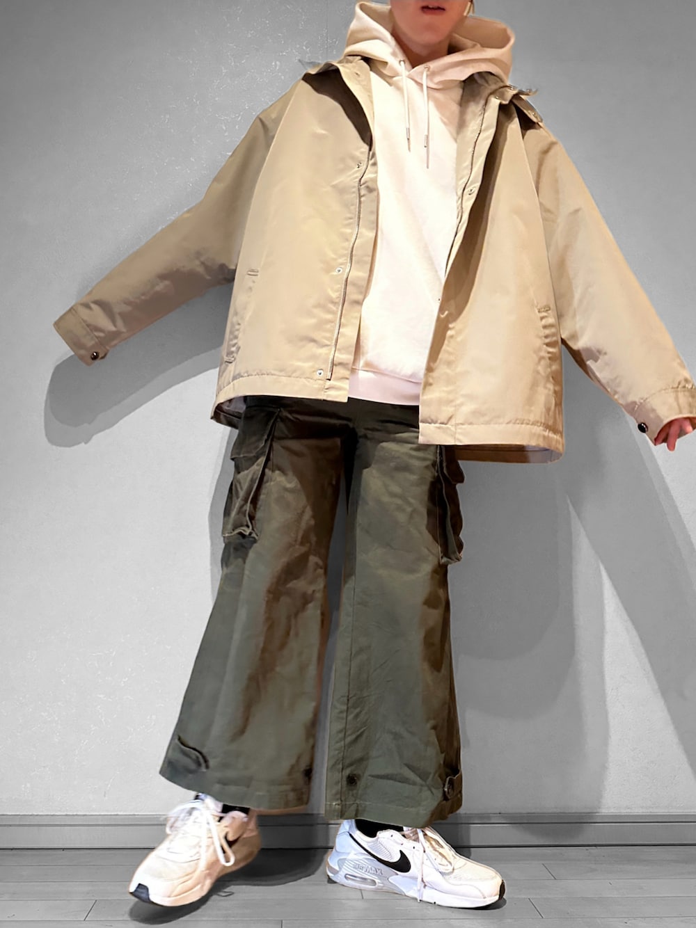 れぇおんのカーゴパンツ「【CLEL】M-47 Type Military Flare Cargo Pants/M-47 タイプ ミリタリー フレア カーゴ パンツ」を使ったコーディネート