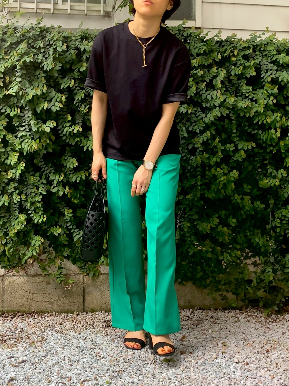 いつもはタックインするけど 今日はラフ感をだしたくてそのまま