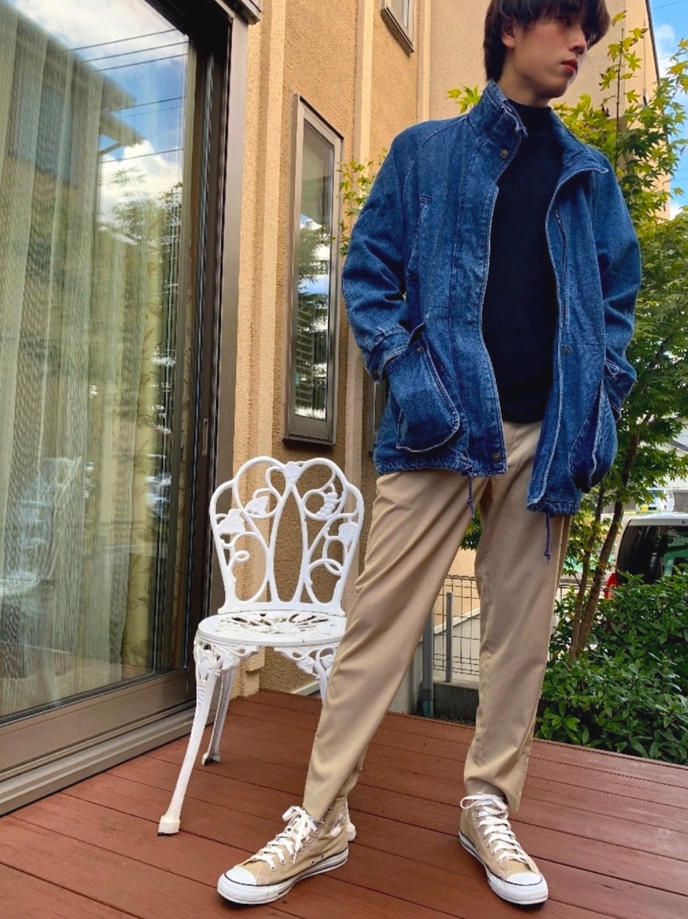 こんにちは! デニムジャケット×ベージュパンツ🩳 デニムジャケットのシルエットがビッグシルエットでストリート感をプラスしてます! それでは( ̄^ ̄)ゞ