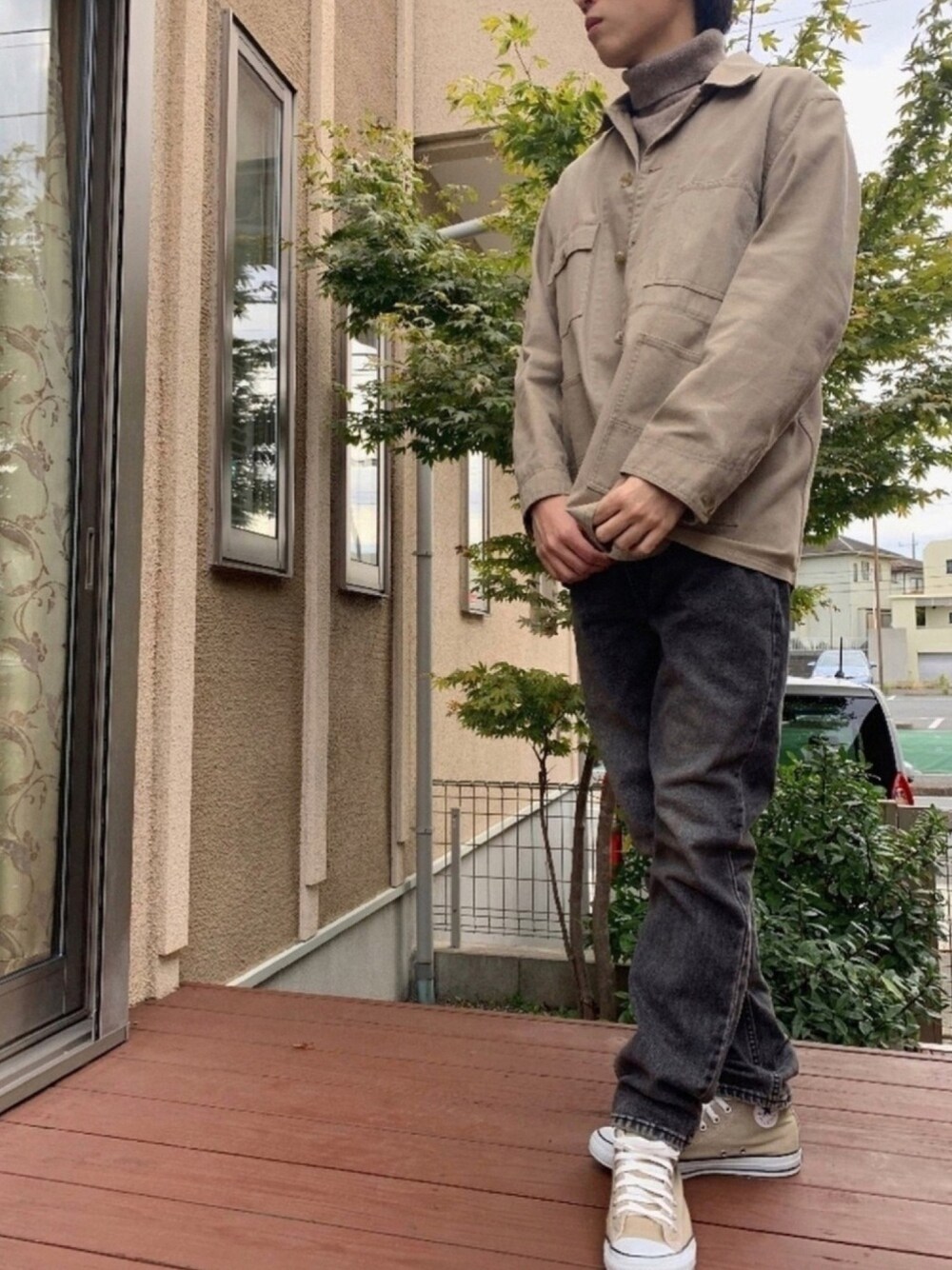 こんにちは! 作業着感強めコーデ🚧 ラフな感じの格好をしたかったので古着のジャケットとリーバイスを合わせました! 靴は無難にコンバース履いちゃいました🙈 それでは( ̄^ ̄)ゞ