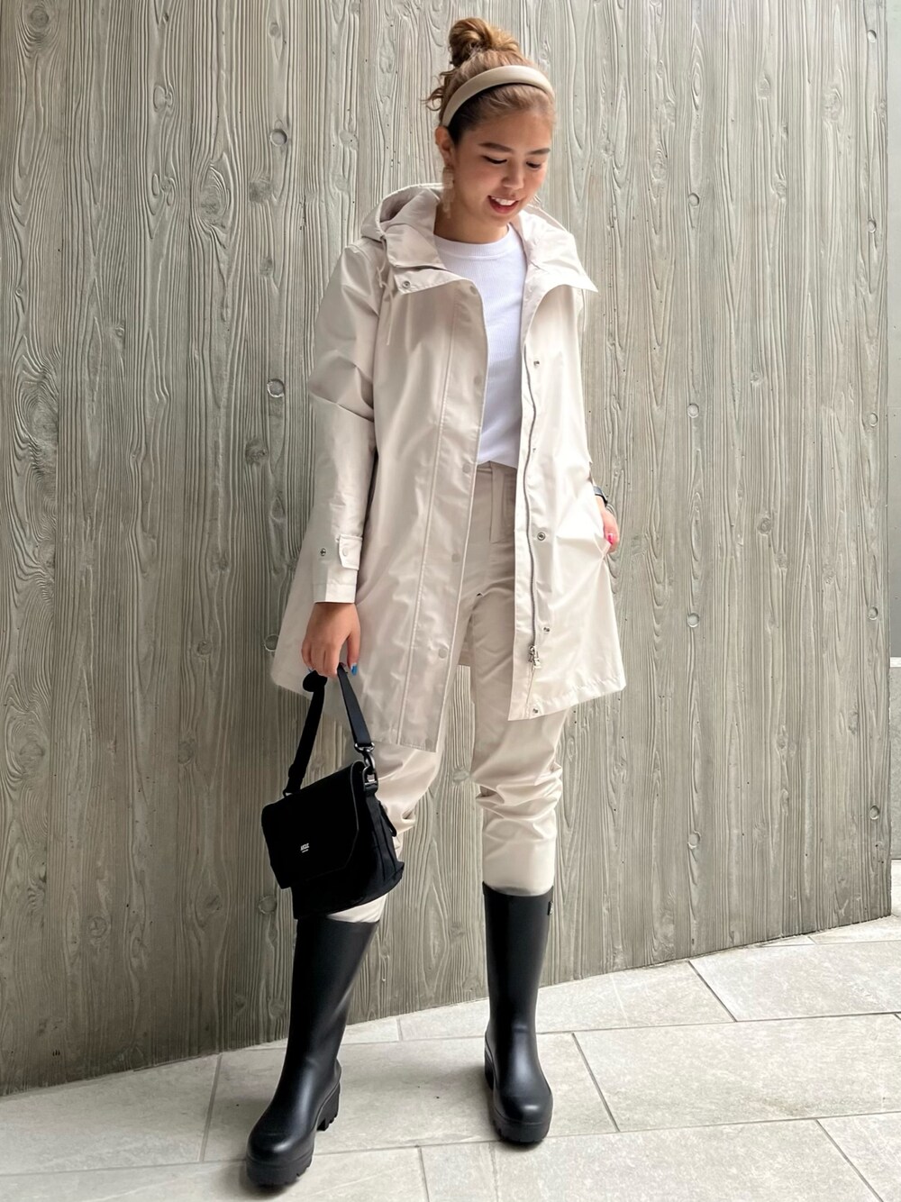 ワッフル八分袖のTシャツはとても着心地良く、体のラインも拾いにくく、さまざまなシチュエーションで活躍してくれる優れものです。 【スタッフ着用サイズ】 ・アウター:38 ・長袖Tシャツ:S ・パンツ:36 ・ラバーブーツ:38 (24 cm)